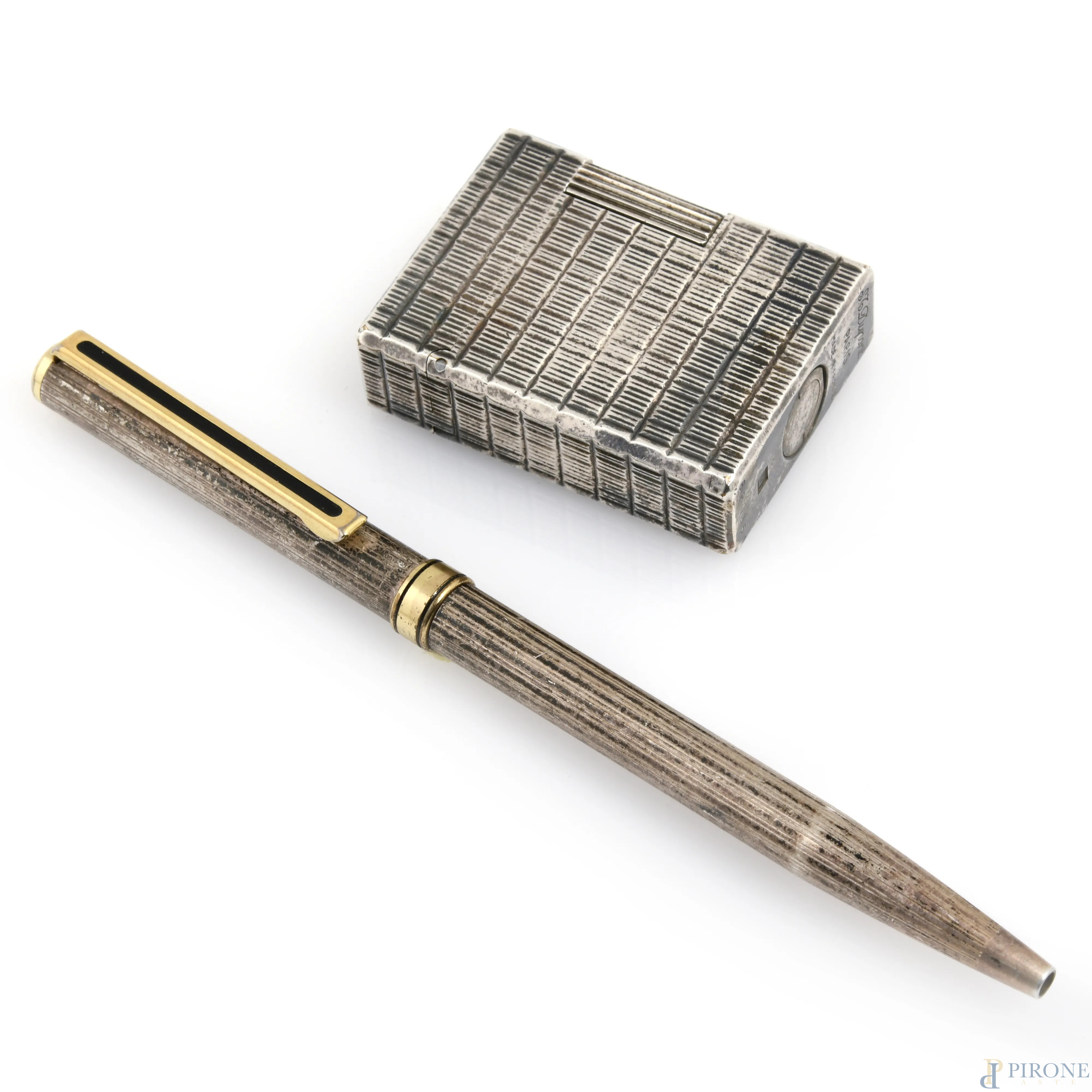 Lotto composto da penna in argento e accendino Dupont, (da revisionare)