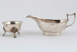 Lotto composto da salsiera e saliera in Sheffield, XX secolo, misure massime cm 7x16x7