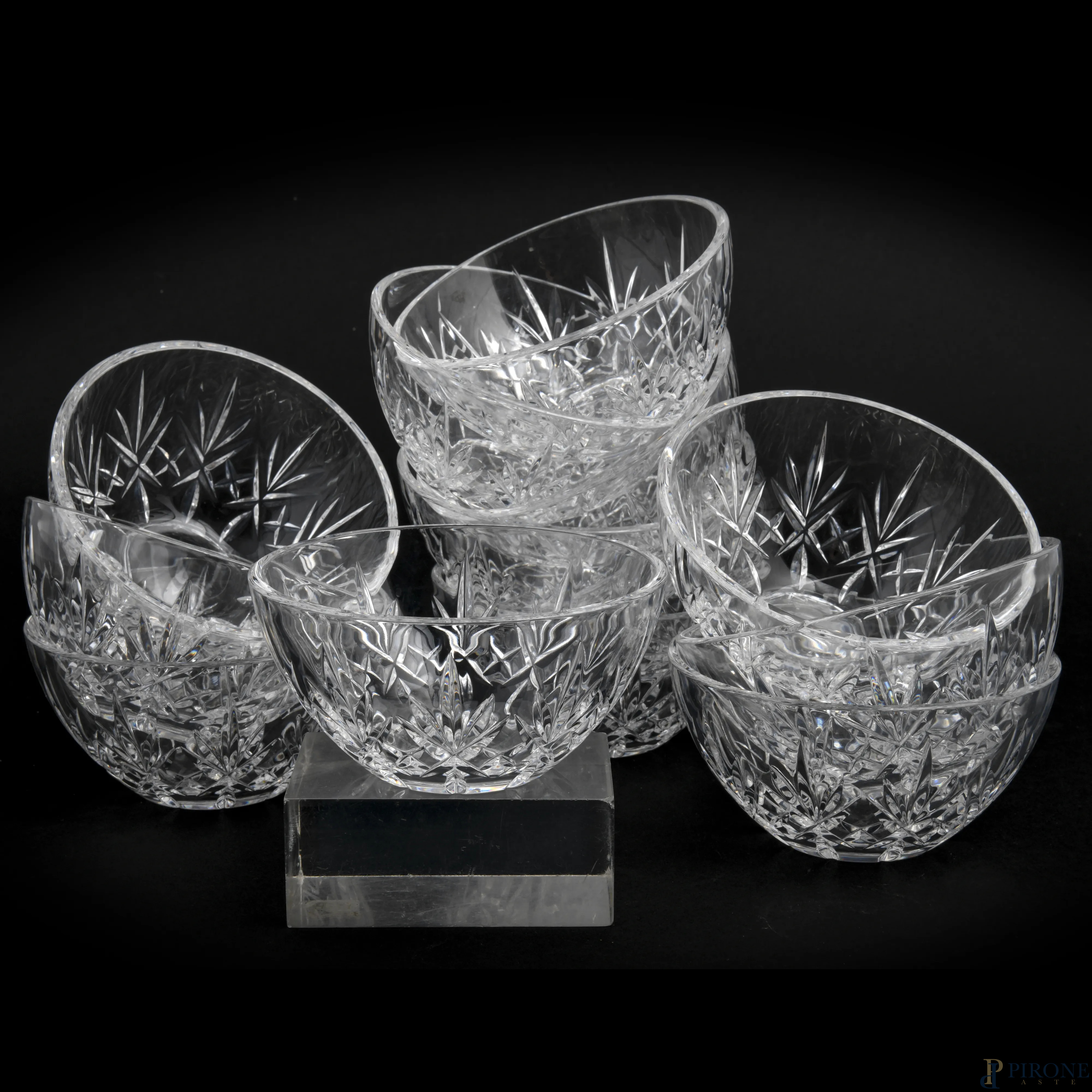 Lotto di 13 coppette da gelato in cristallo, XX secolo, cm 6x12 (difetti, sbeccature)