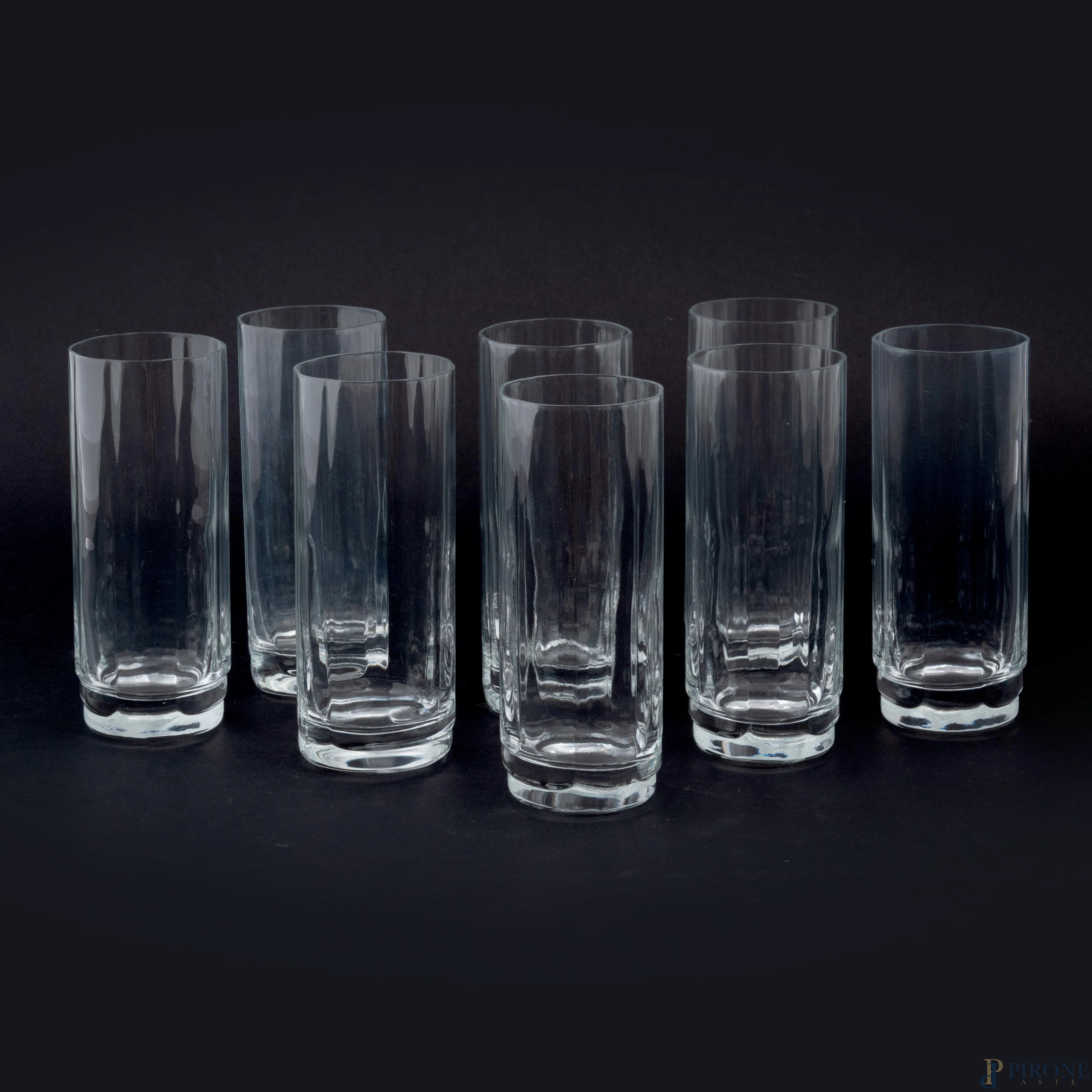 Lotto di 8 tumbler in vetro, XX secolo, altezza cm 15