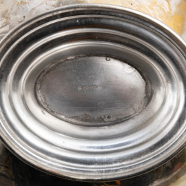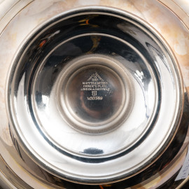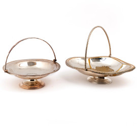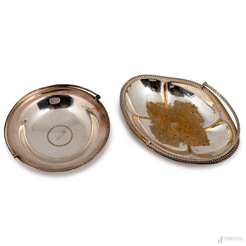 Lotto di due cestini in metallo argentato, misure massime cm 23,5x30,5x23