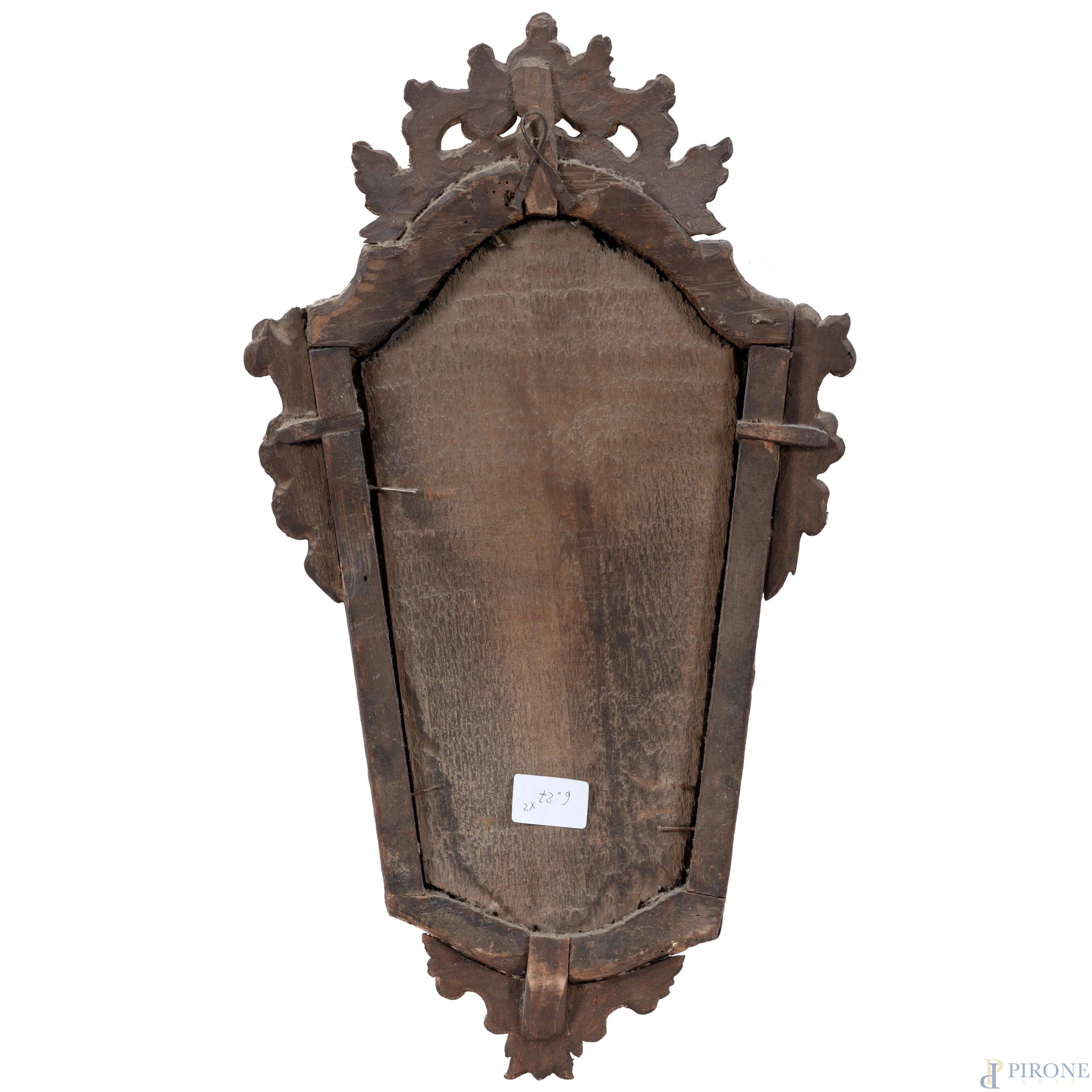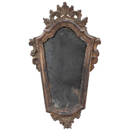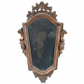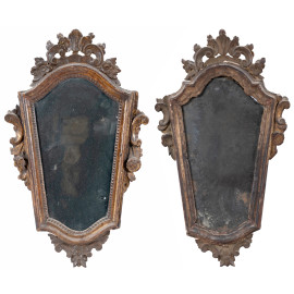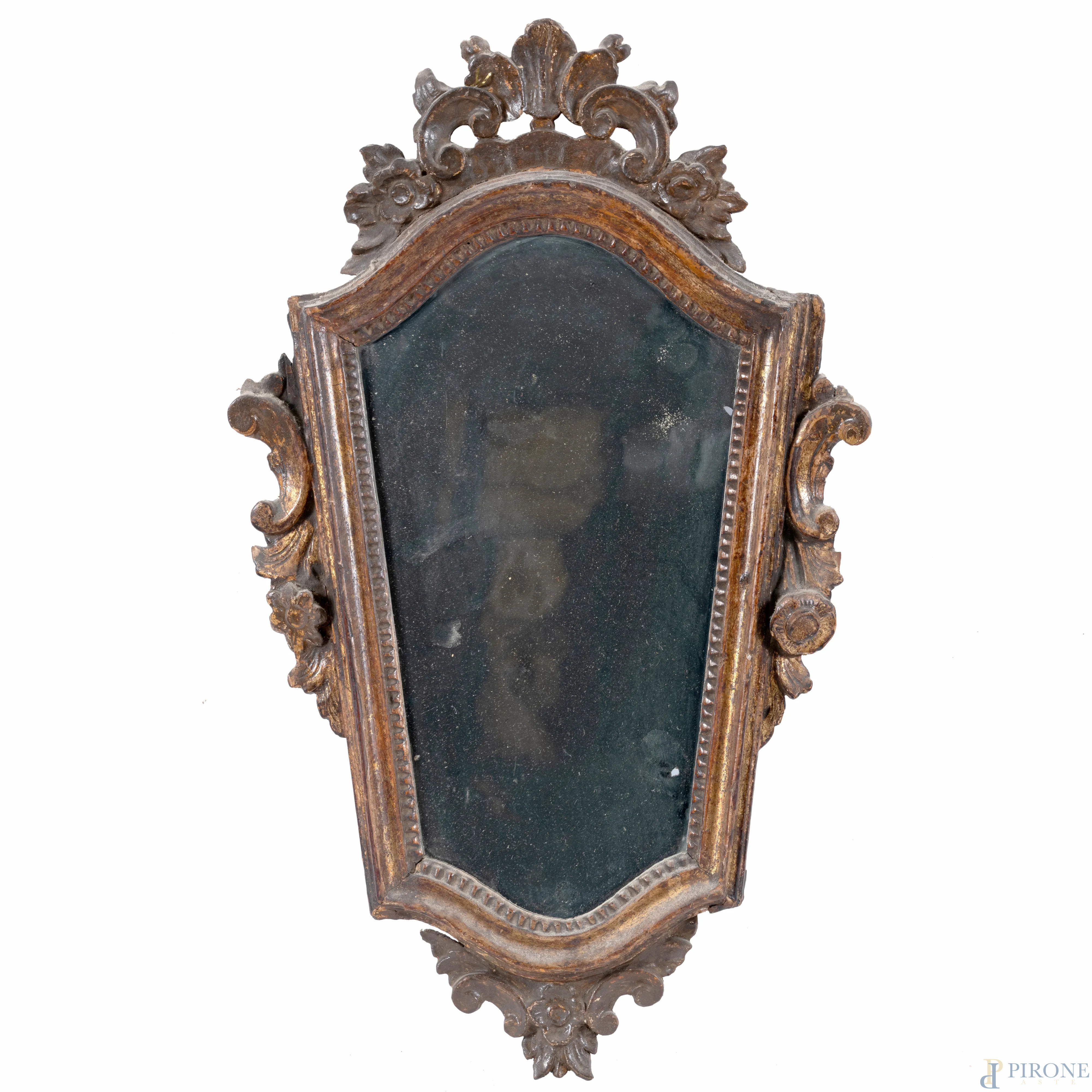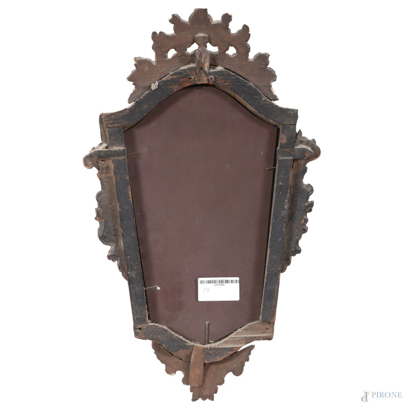 Lotto di due specchierine in legno intagliato e dorato, inizi del XX secolo, misure massime cm 54x33 (cadute di doratura, difetti, scalfiture)