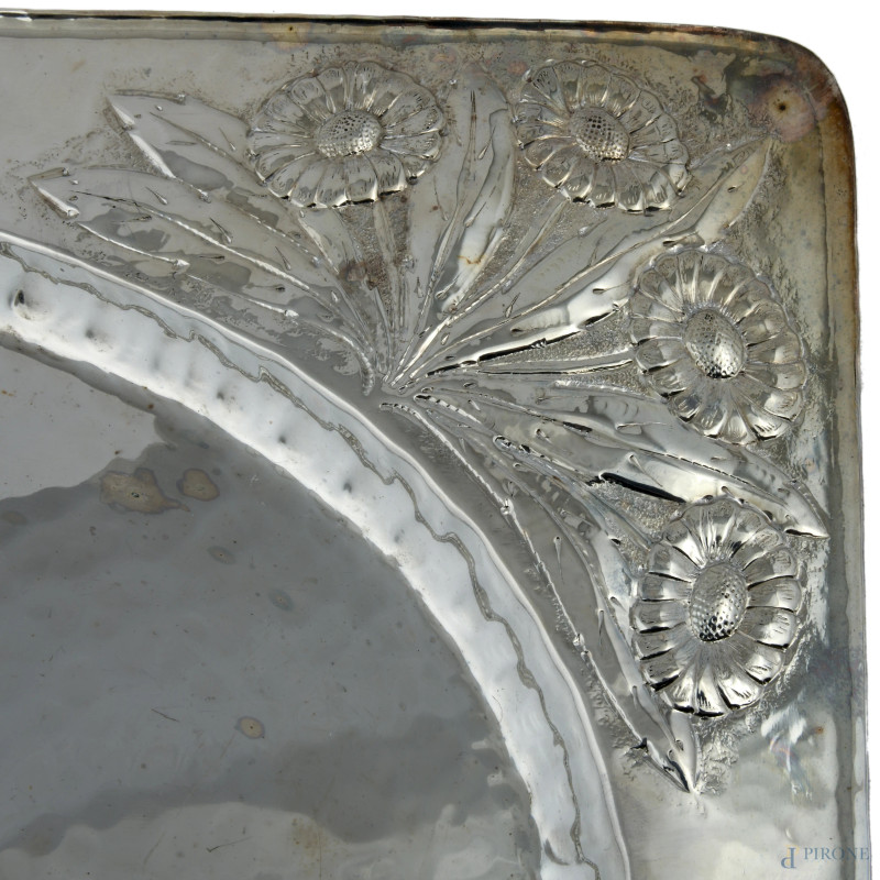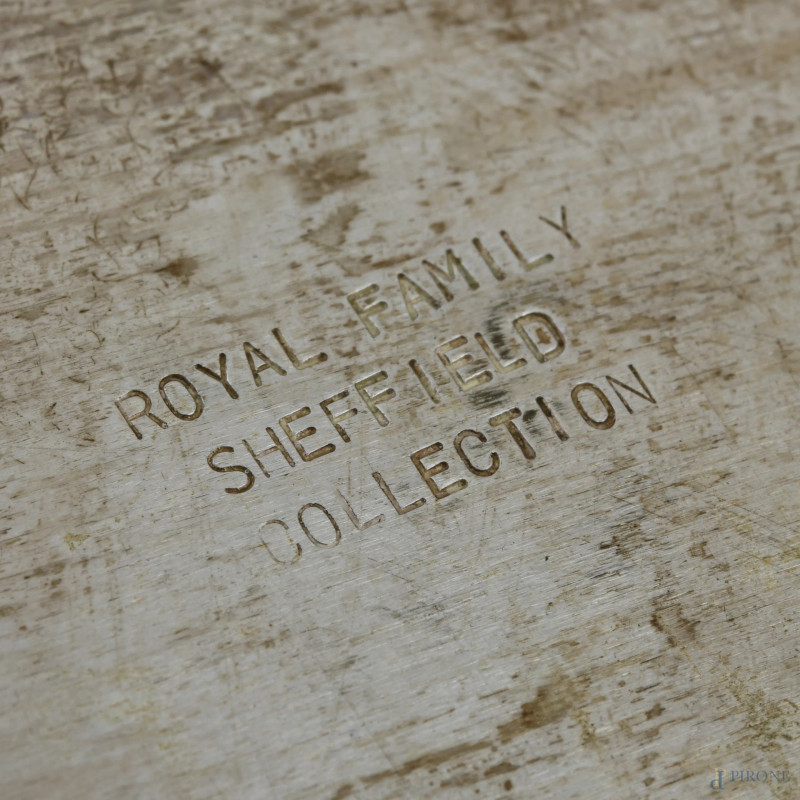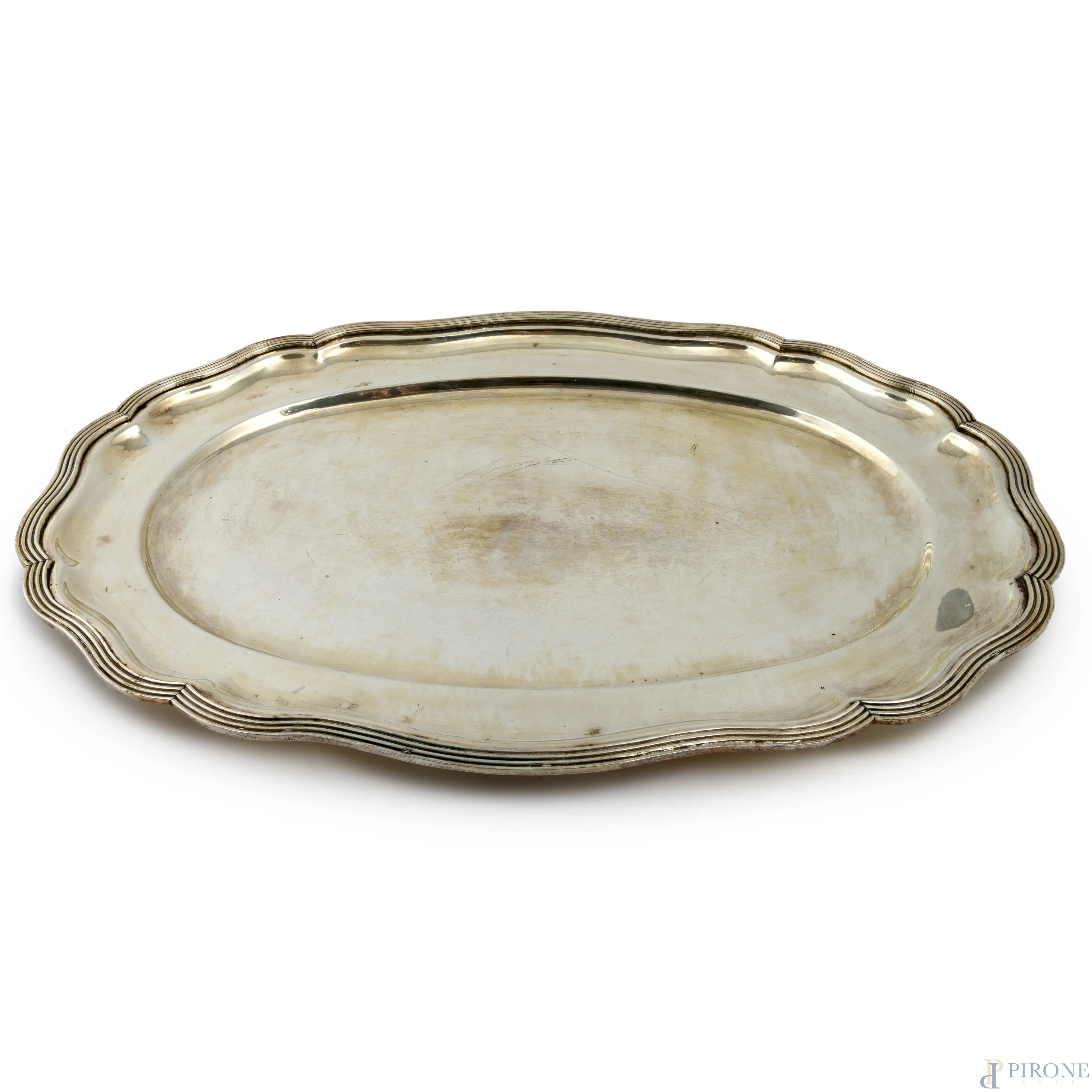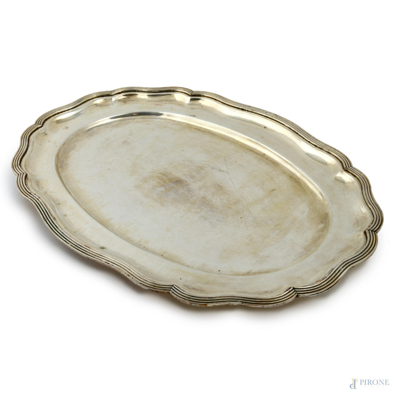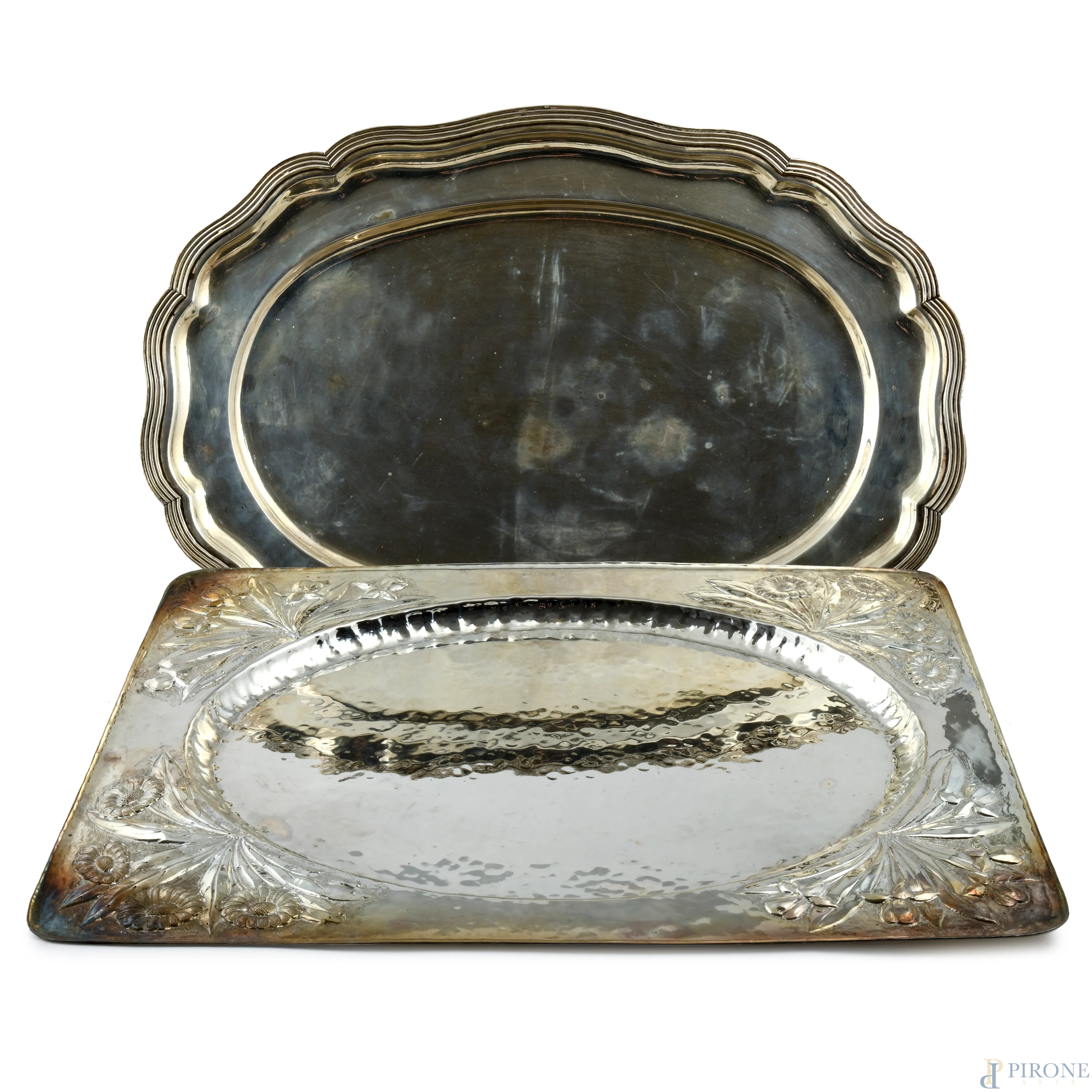 Lotto di due vassoi in metallo, XX secolo, misure massime cm 58x42,5
