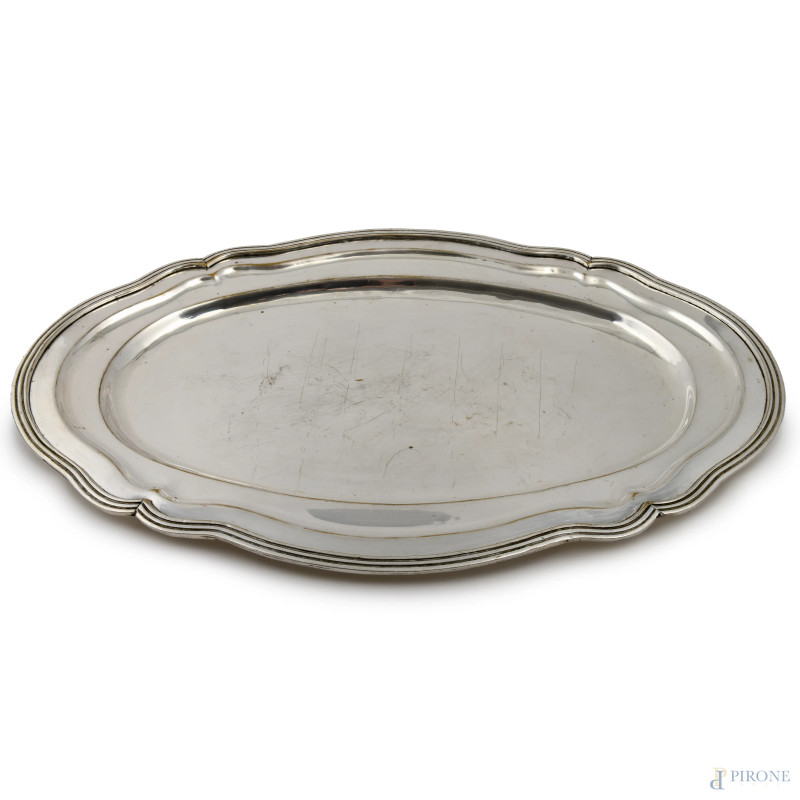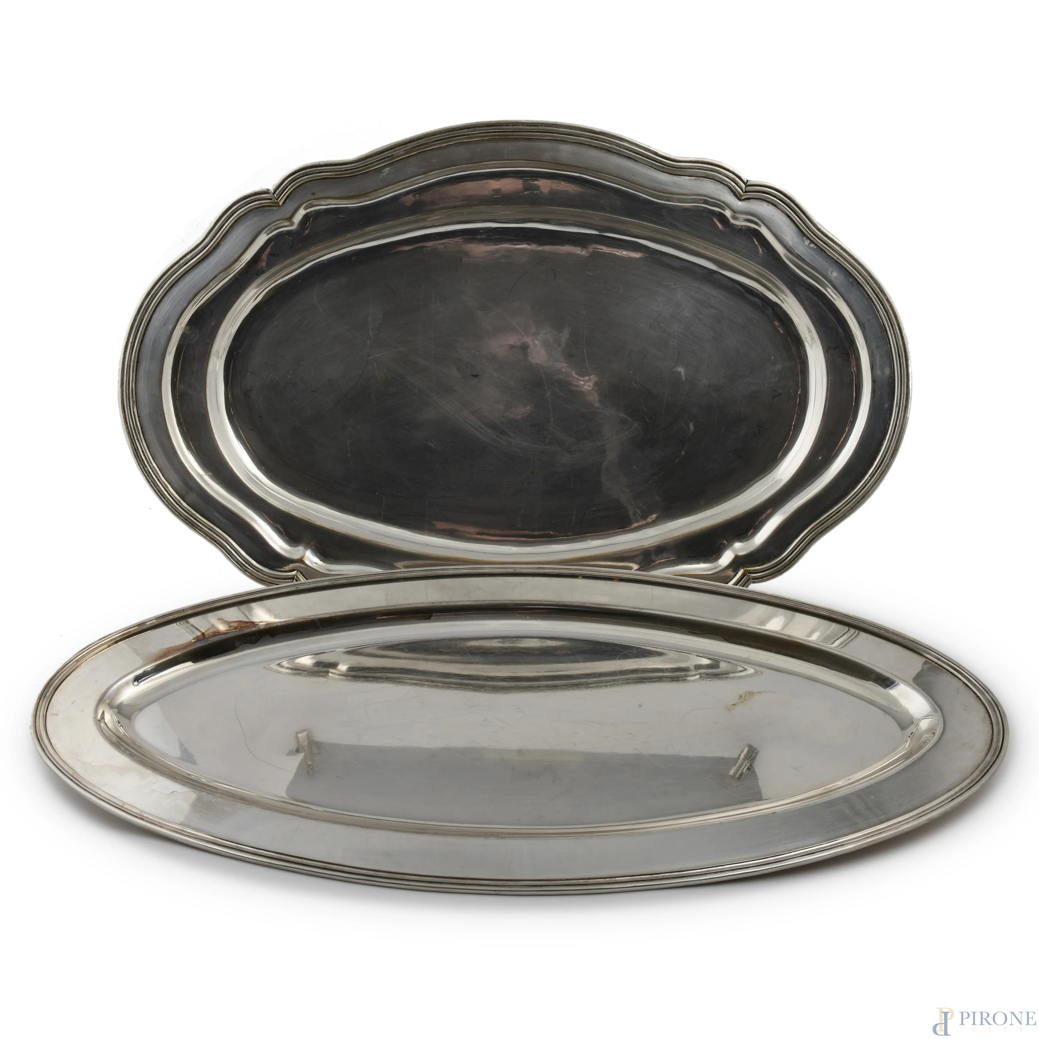 Lotto di due vassoi in metallo, XX secolo, misure massime cm 62x37,5