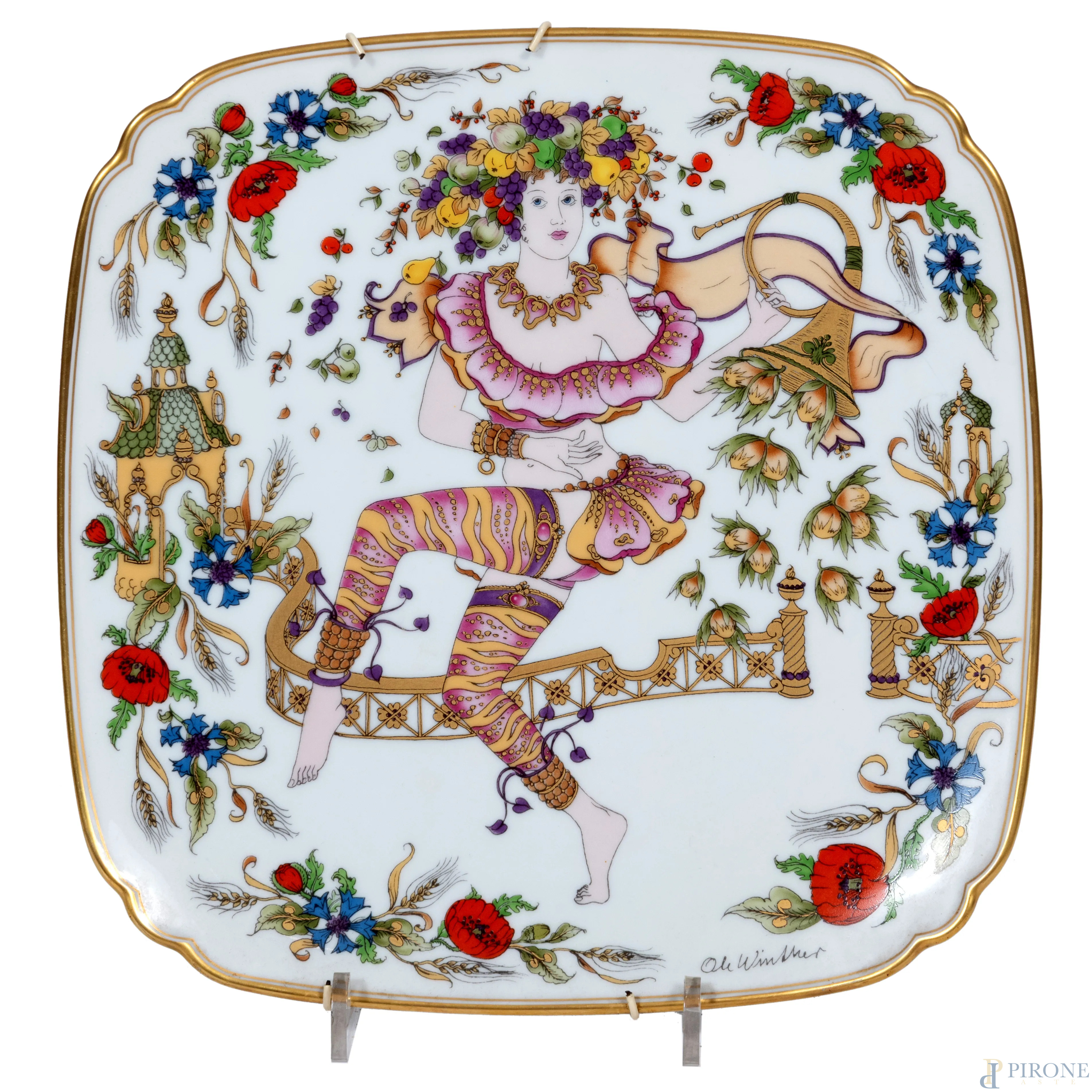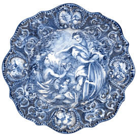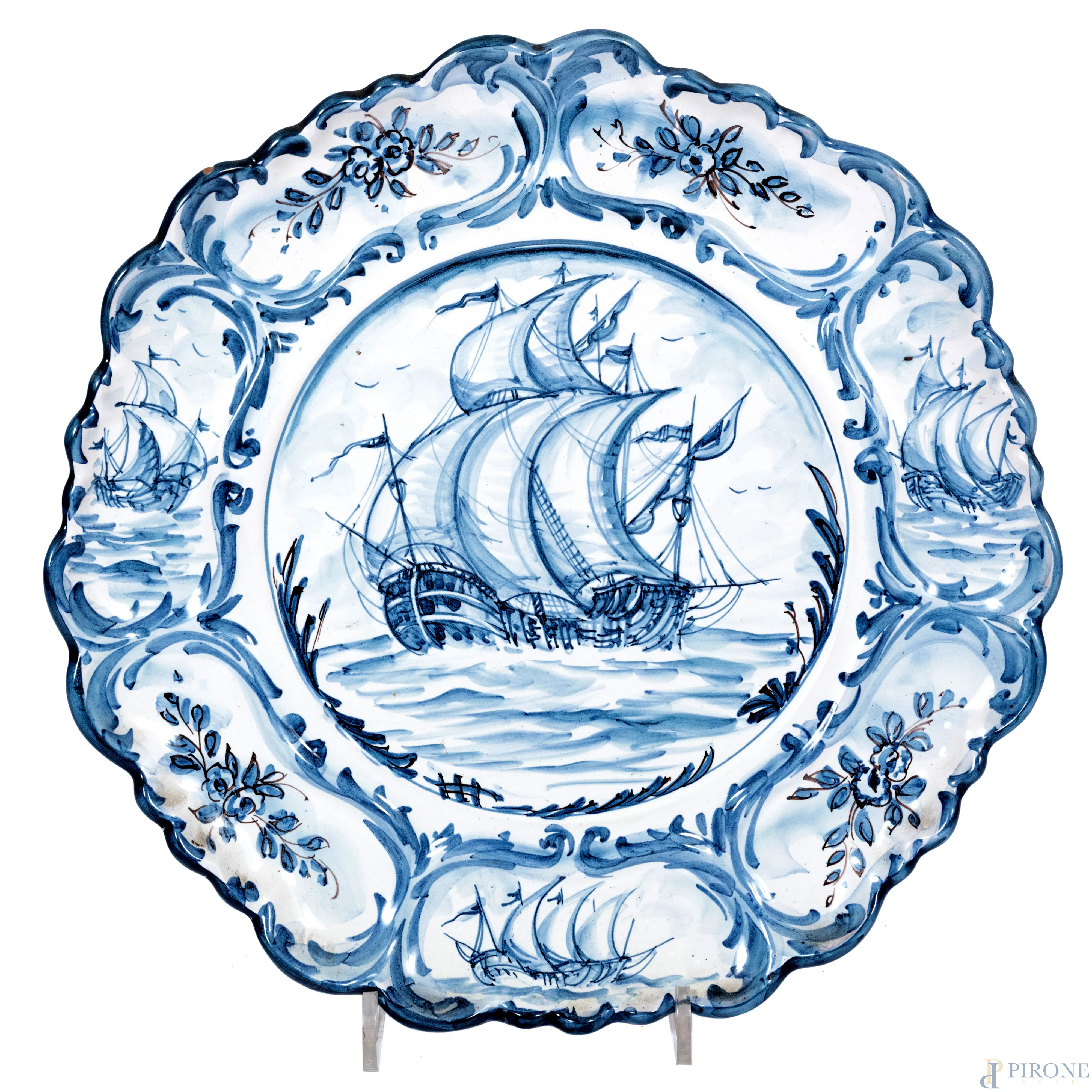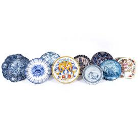Lotto di nove piatti in ceramica di varie manifatture, XX secolo, diametro massimo cm 40, (segni di usura, scalfiture, cadute di smalto, felature)