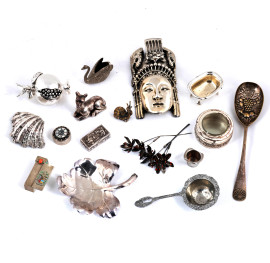 Lotto di oggetti in argento e metallo argentato, lunghezza massima cm 21,5, peso argento gr 100