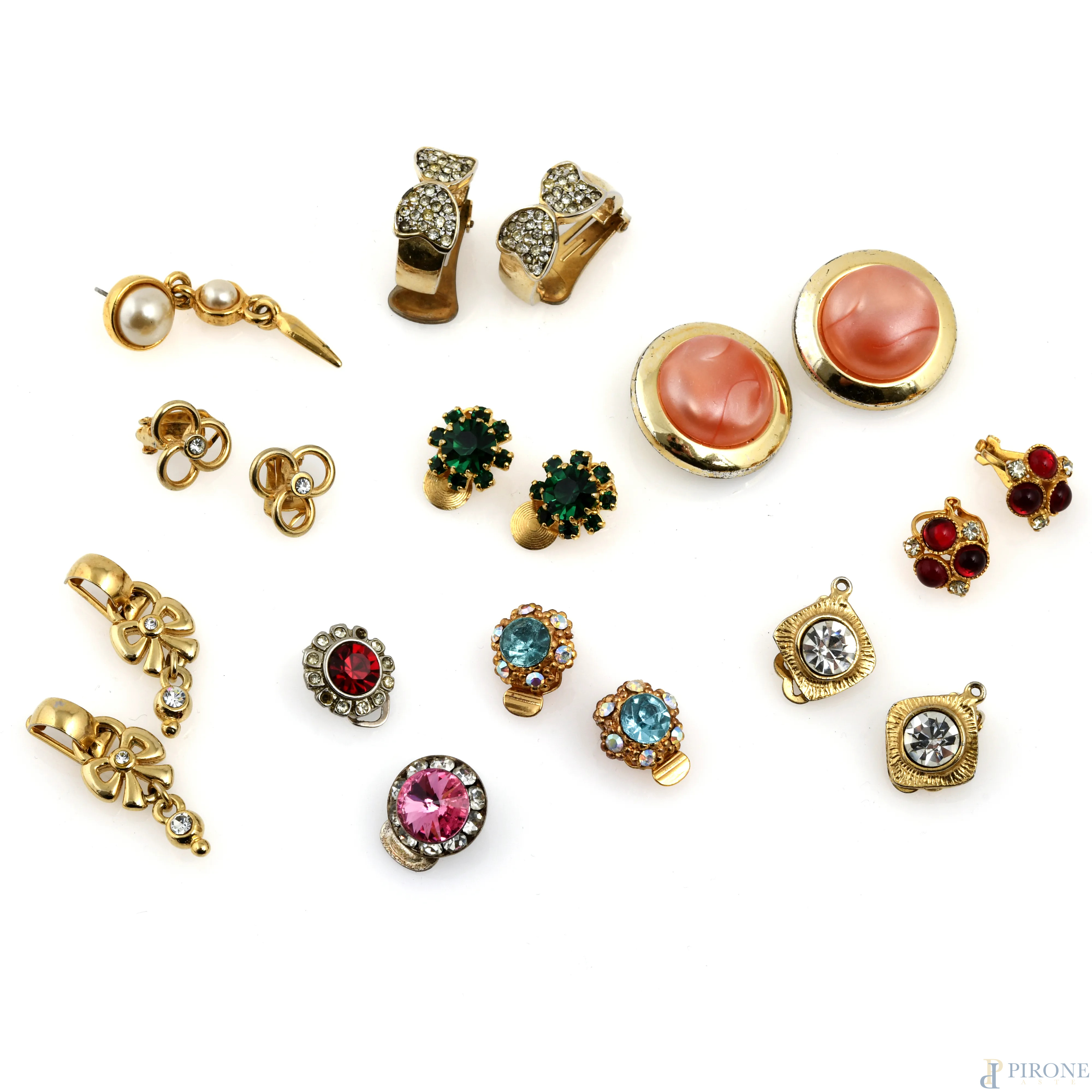 Lotto di orecchini di bigiotteria, misura massima cm 2,5 (segni di usura)