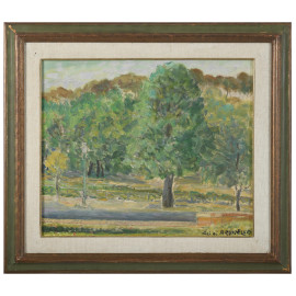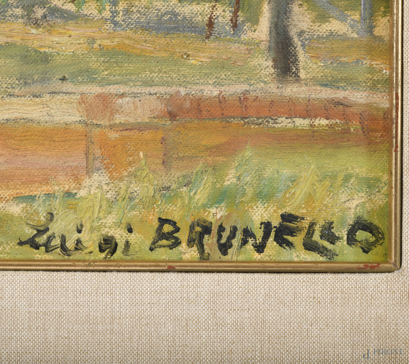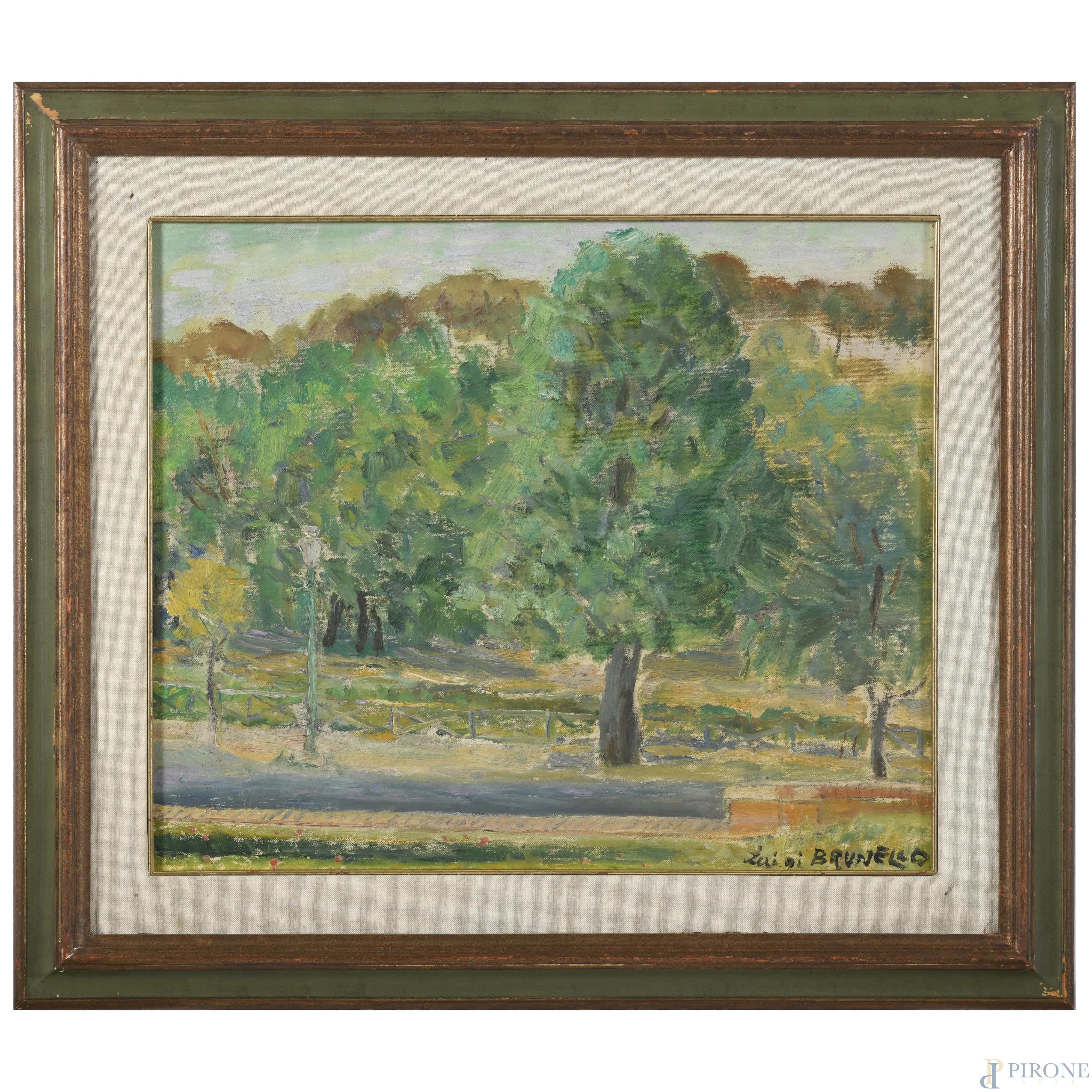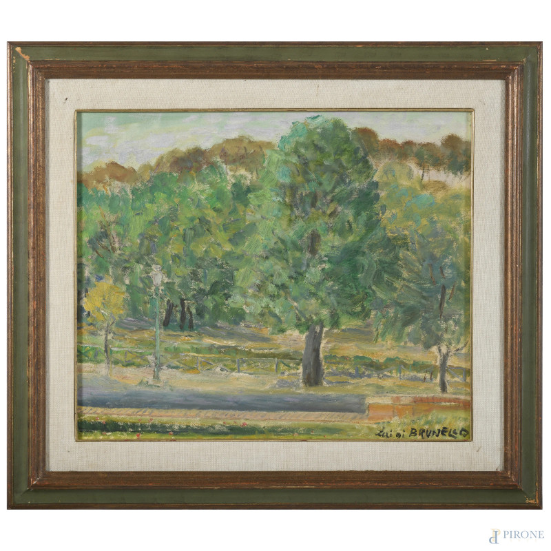 Luigi Brunello, Villa Borghese, olio su tela, cm 50x60, firmato in basso a destra, entro cornice