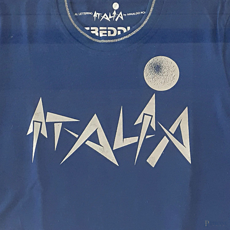 Maglia ufficiale della squadra italiana alle Olimpiadi di Pechino del 2008 con logo disegnato da Arnaldo Pomodoro