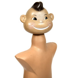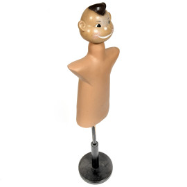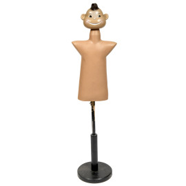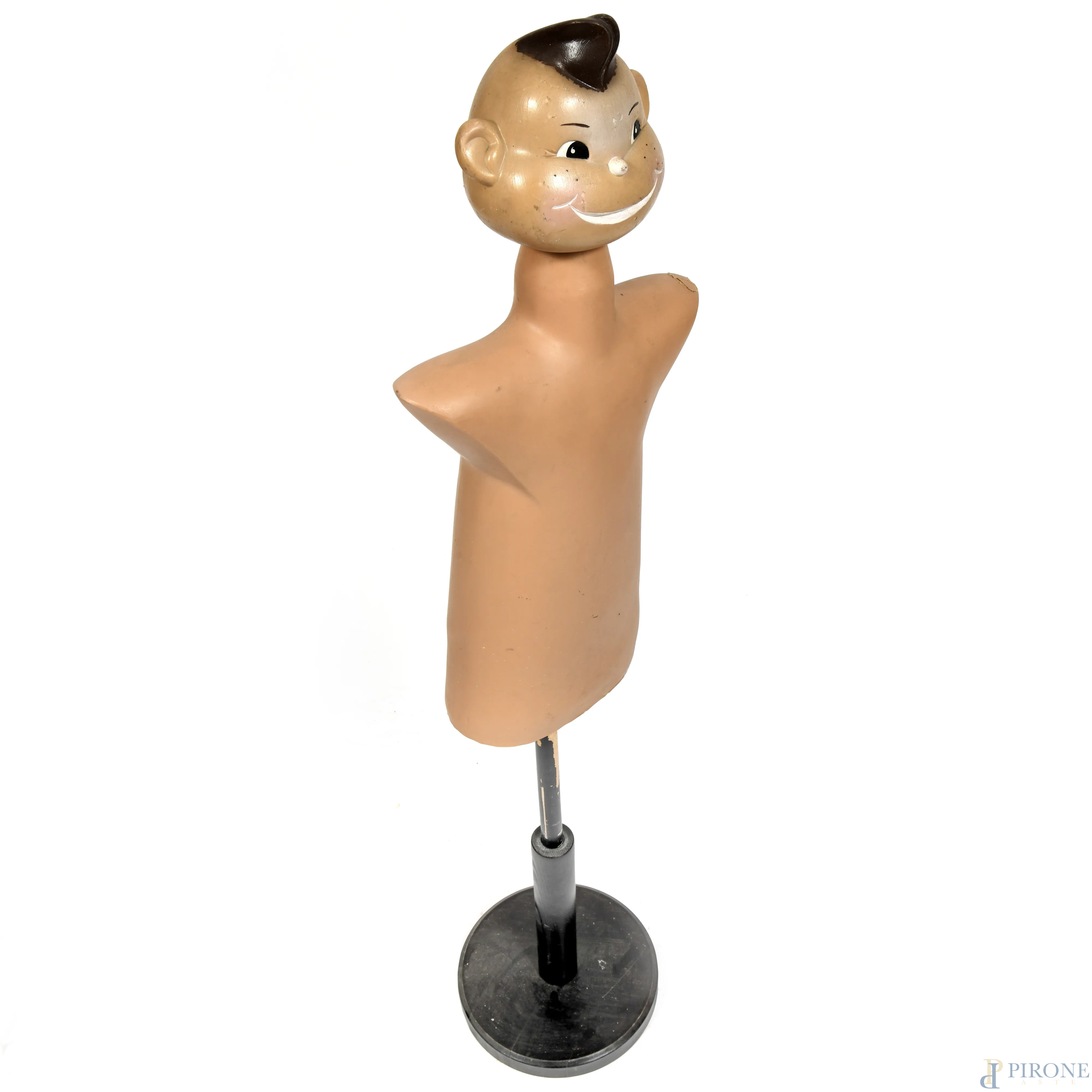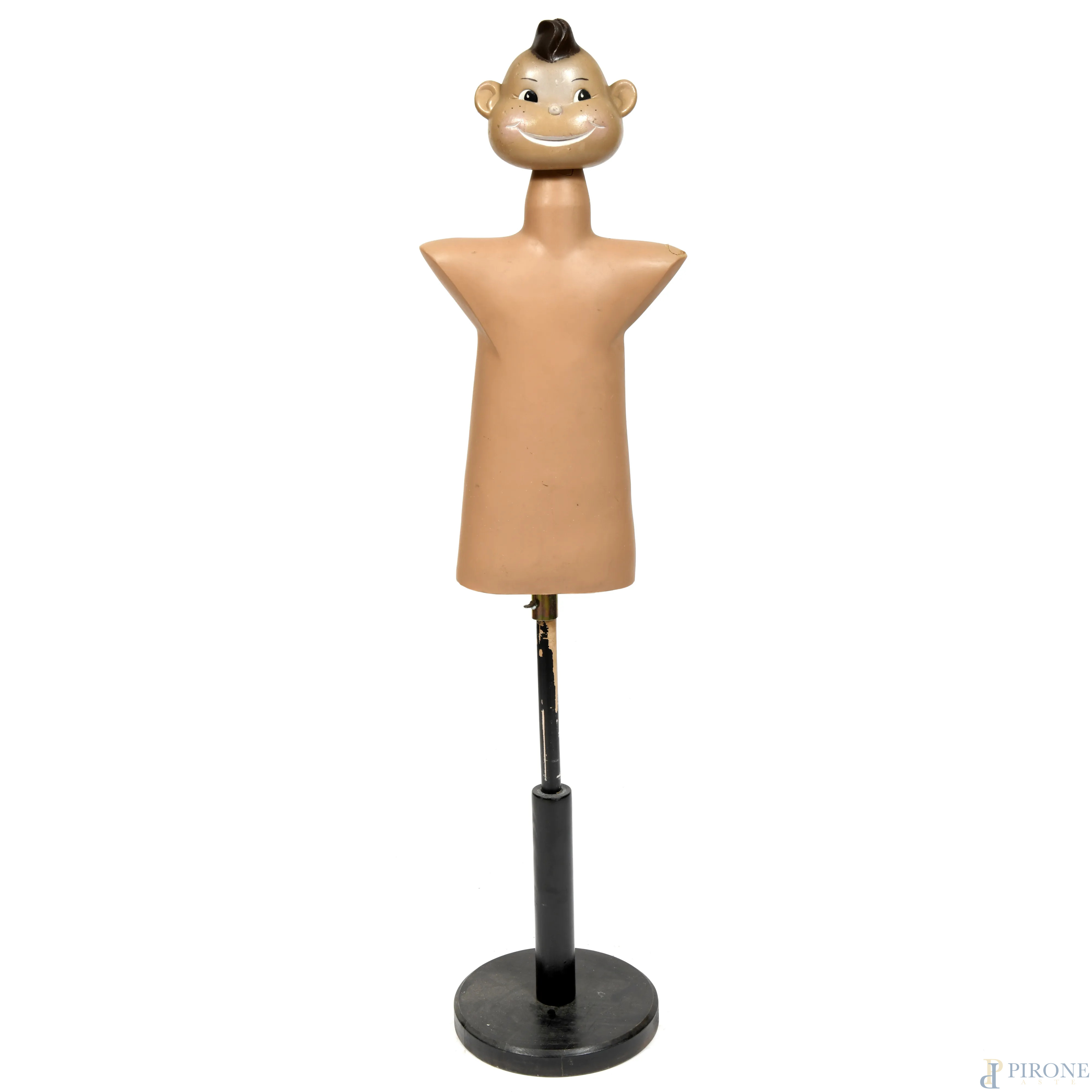 Manichino Vintage in plastica e metallo su base in legno ad altezza regolabile, XX secolo, altezza massima cm 123, (segni di usure, rotture)
