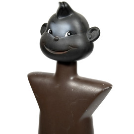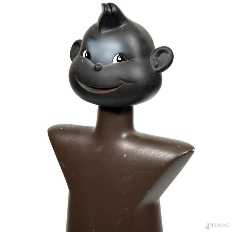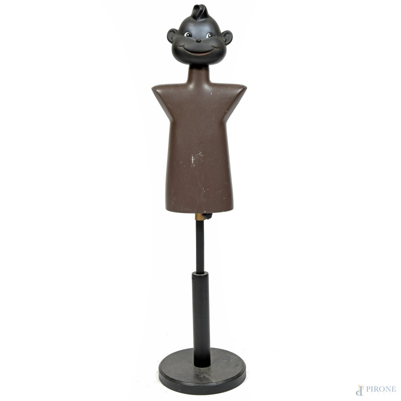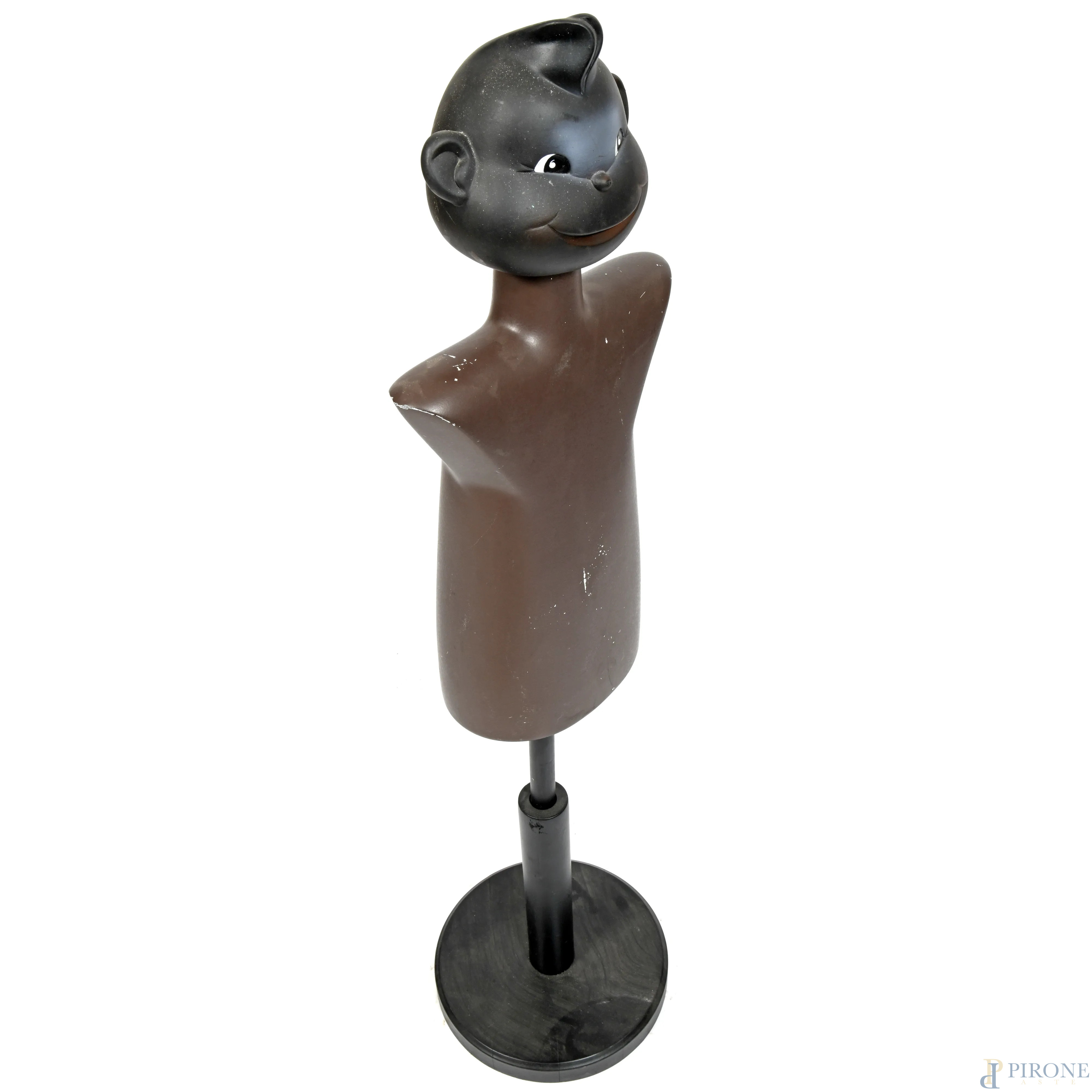 Manichino Vintage in plastica e metallo su base in legno ad altezza regolabile, XX secolo, altezza massima cm 123, (segni di usura)
