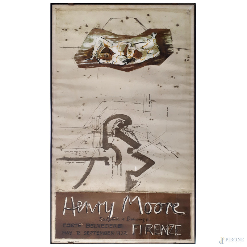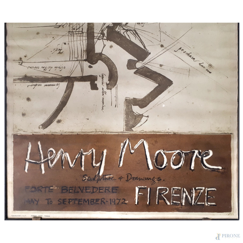 Manifesto della mostra di Henry Moore presso il Forte Belvedere di Firenze nel 1972, cm 68x40