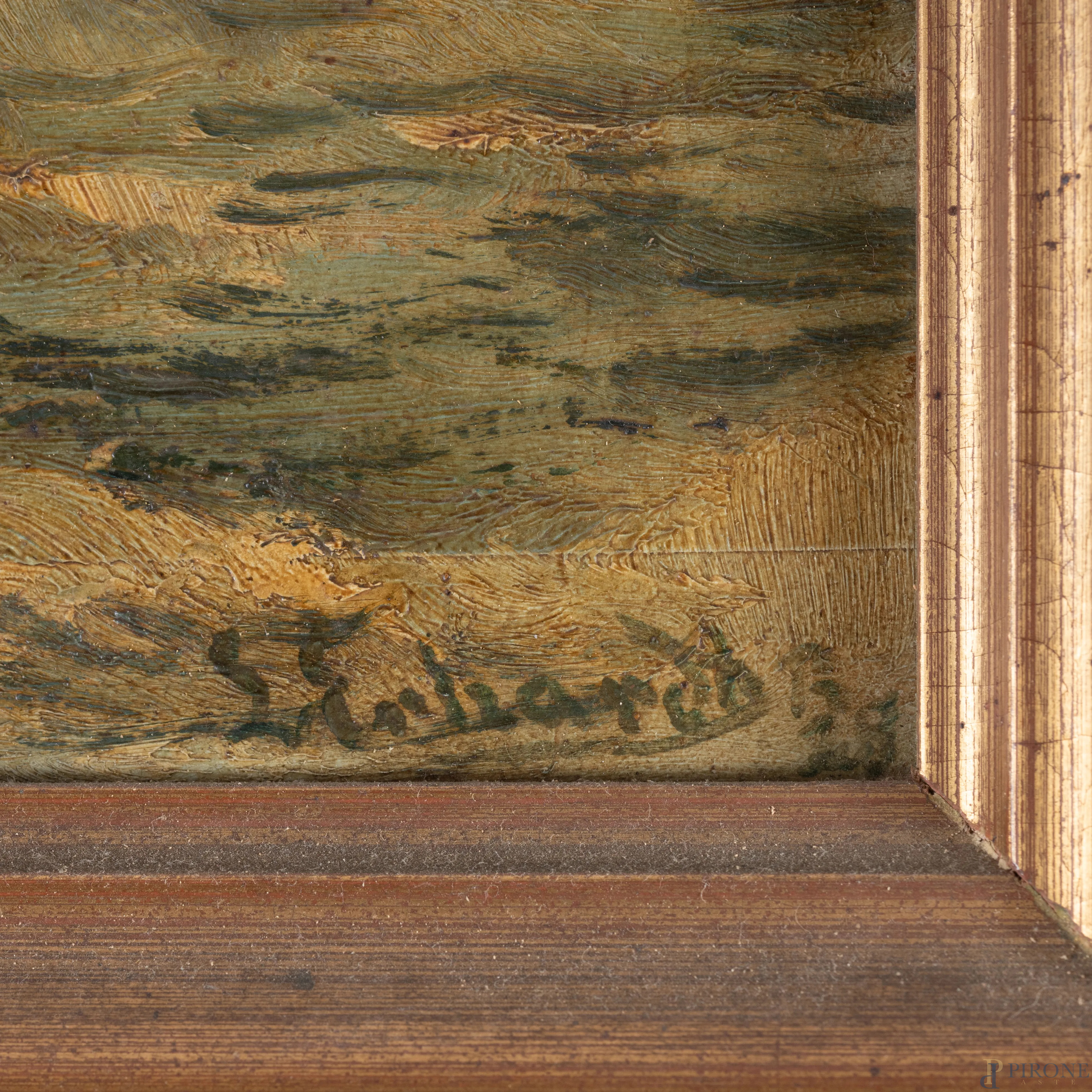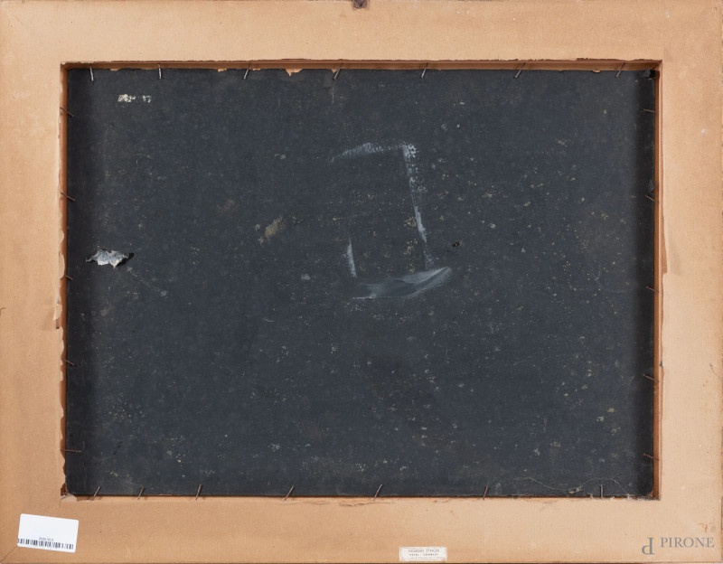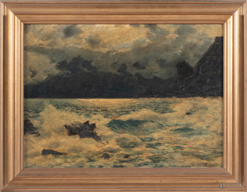 Mareggiata, XX secolo, olio su cartone, cm 41x57, firmato e datato in basso a destra, entro cornice