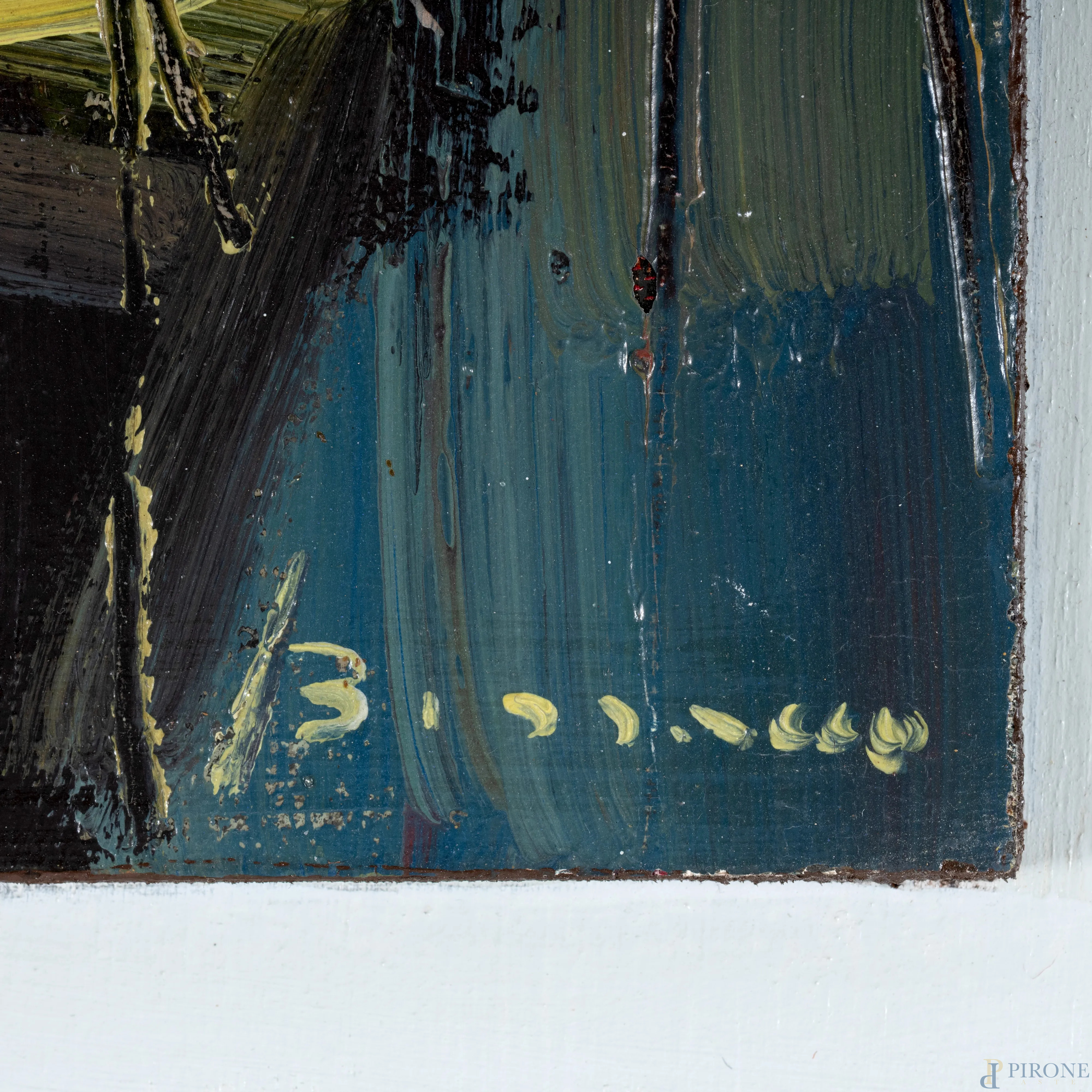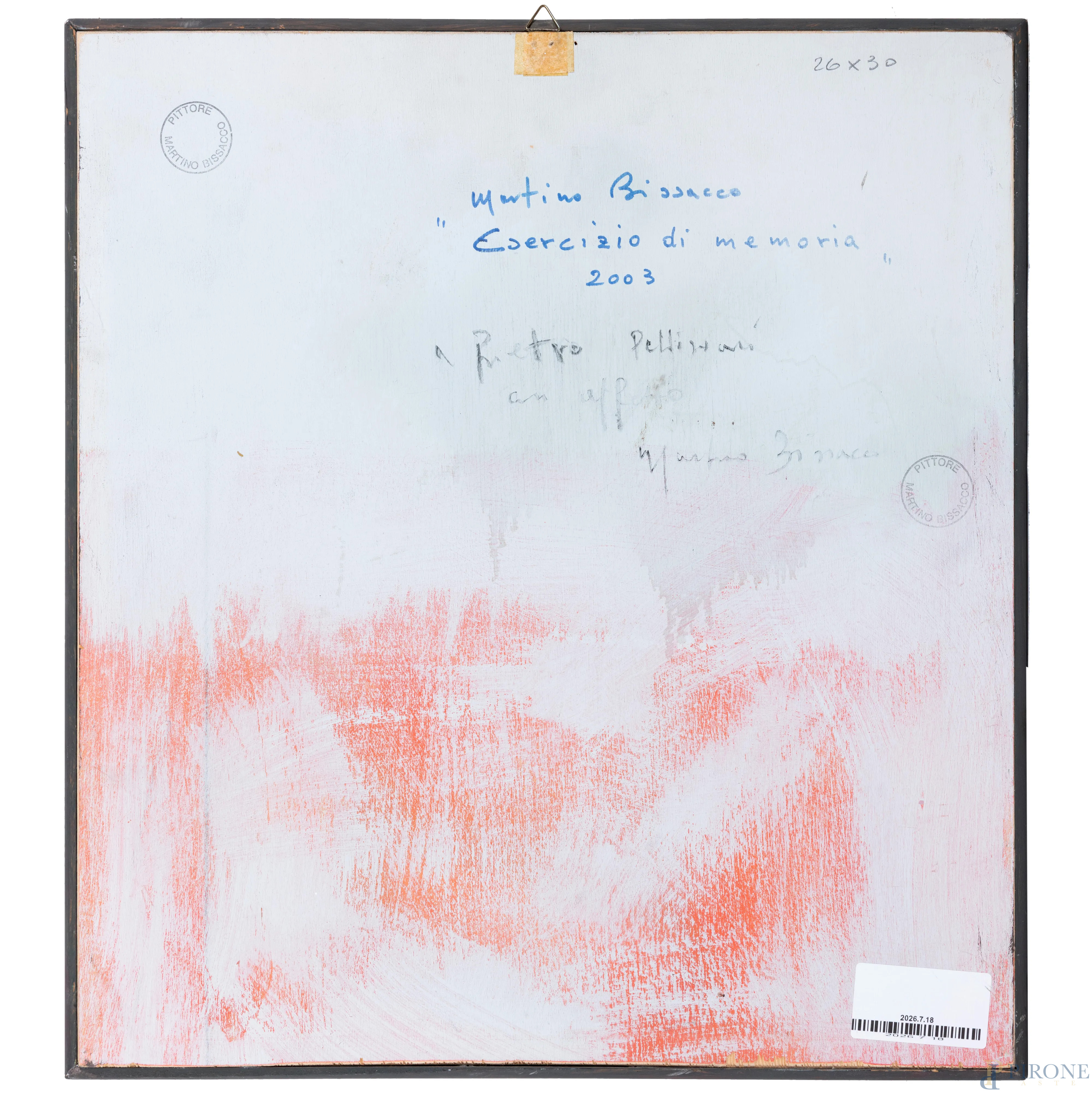 Martino Bissacco, Esercizio di memoria, 2003, olio su cartone telato, cm 30x26, firmato in basso a destra, titolato, dedicato, firmato, datato al retro