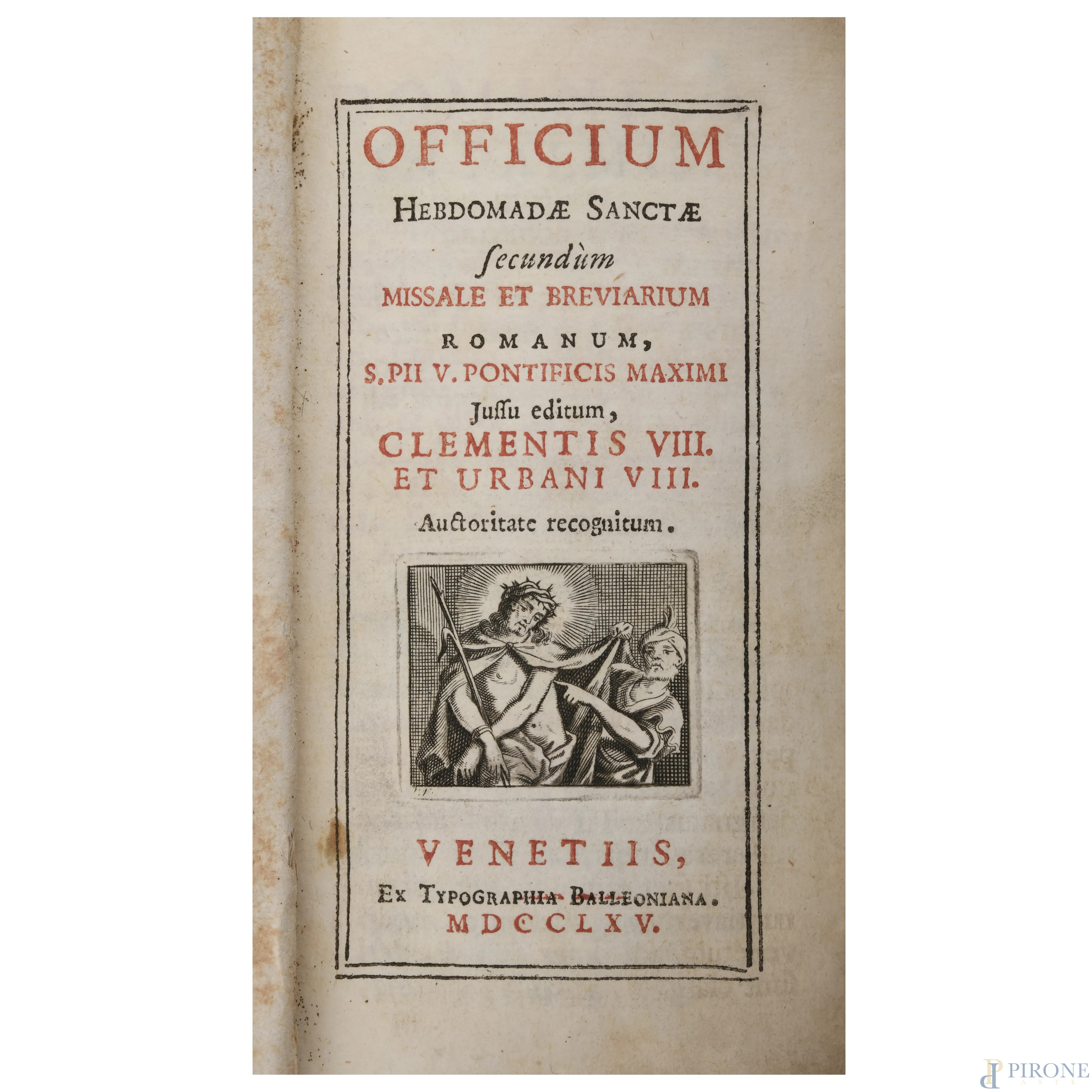 Officium Hebdomadae Sanctae Secundum Missale et Breviarium, Venezia 1765, entro custodia in cartone, (segni di usura, difetti)