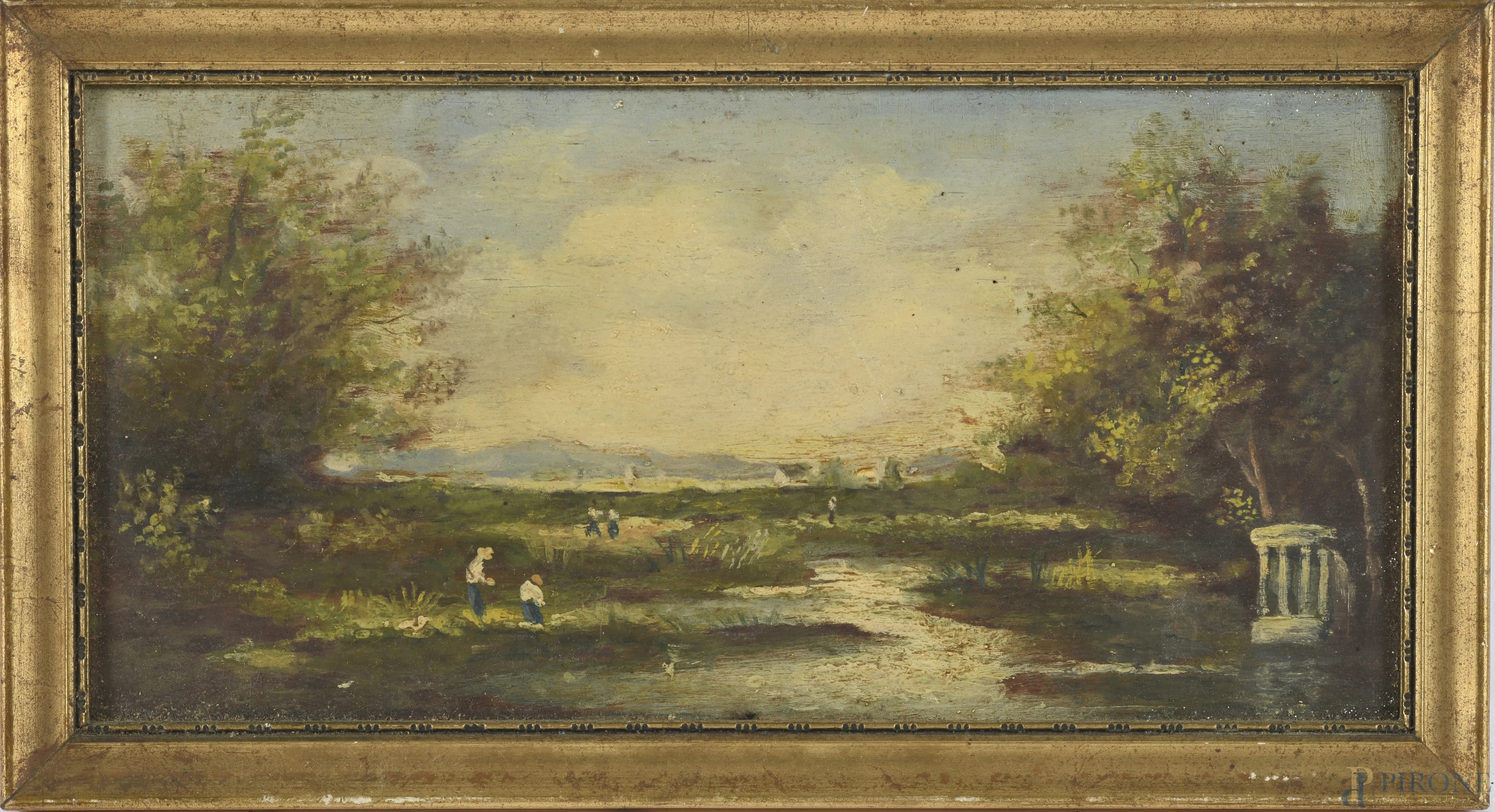 Palude, XX-XX secolo, olio su tavoletta, cm 13x26,5, entro cornice, (segni di usura del tempo)