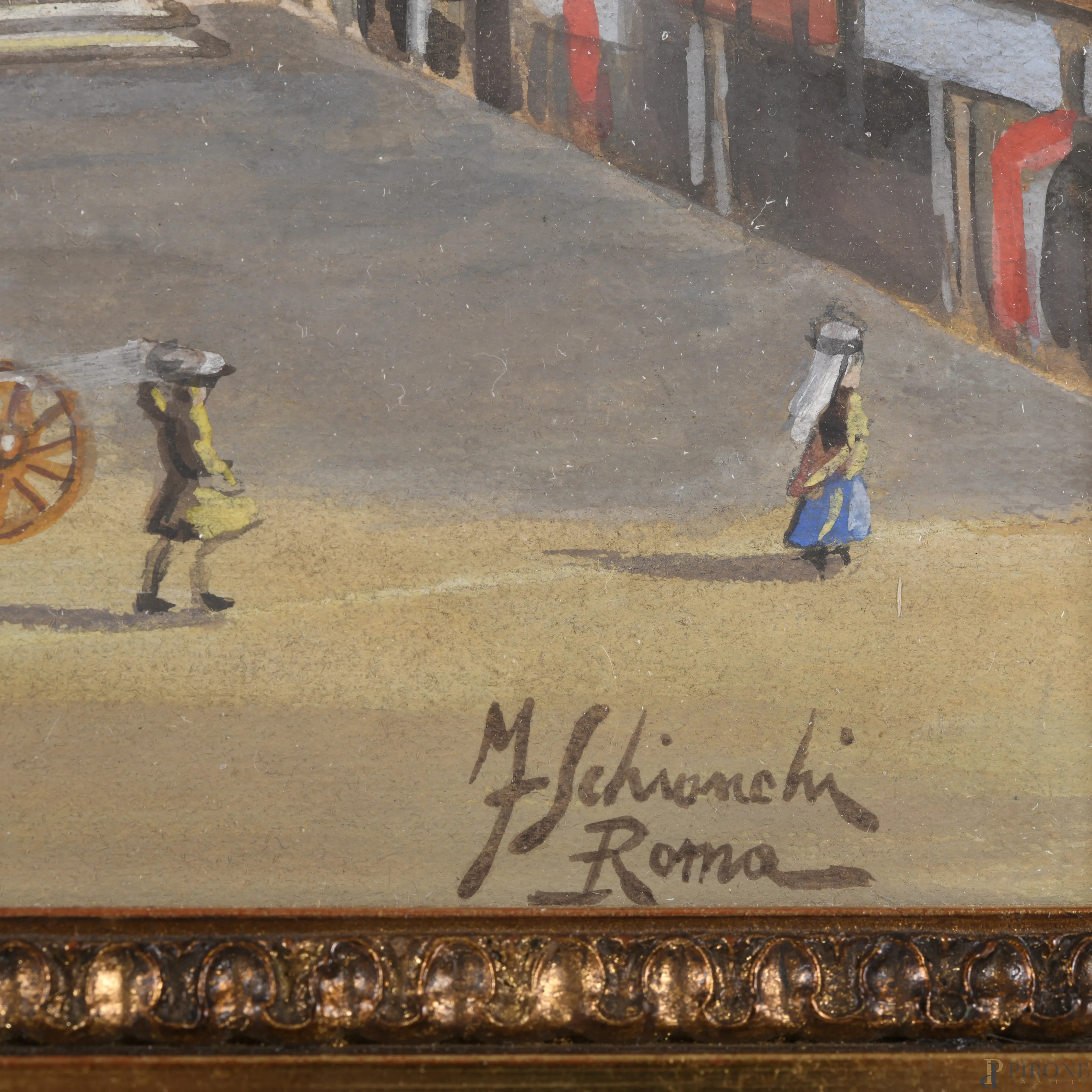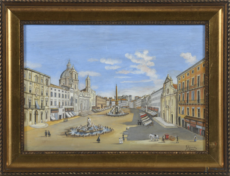 Piazza Navona, XX secolo, tecnica mista su carta, cm 27x38, firmato e iscritto "Roma" in basso a destra, entro cornice