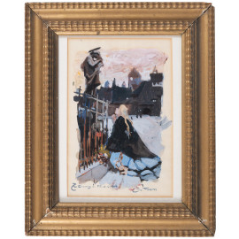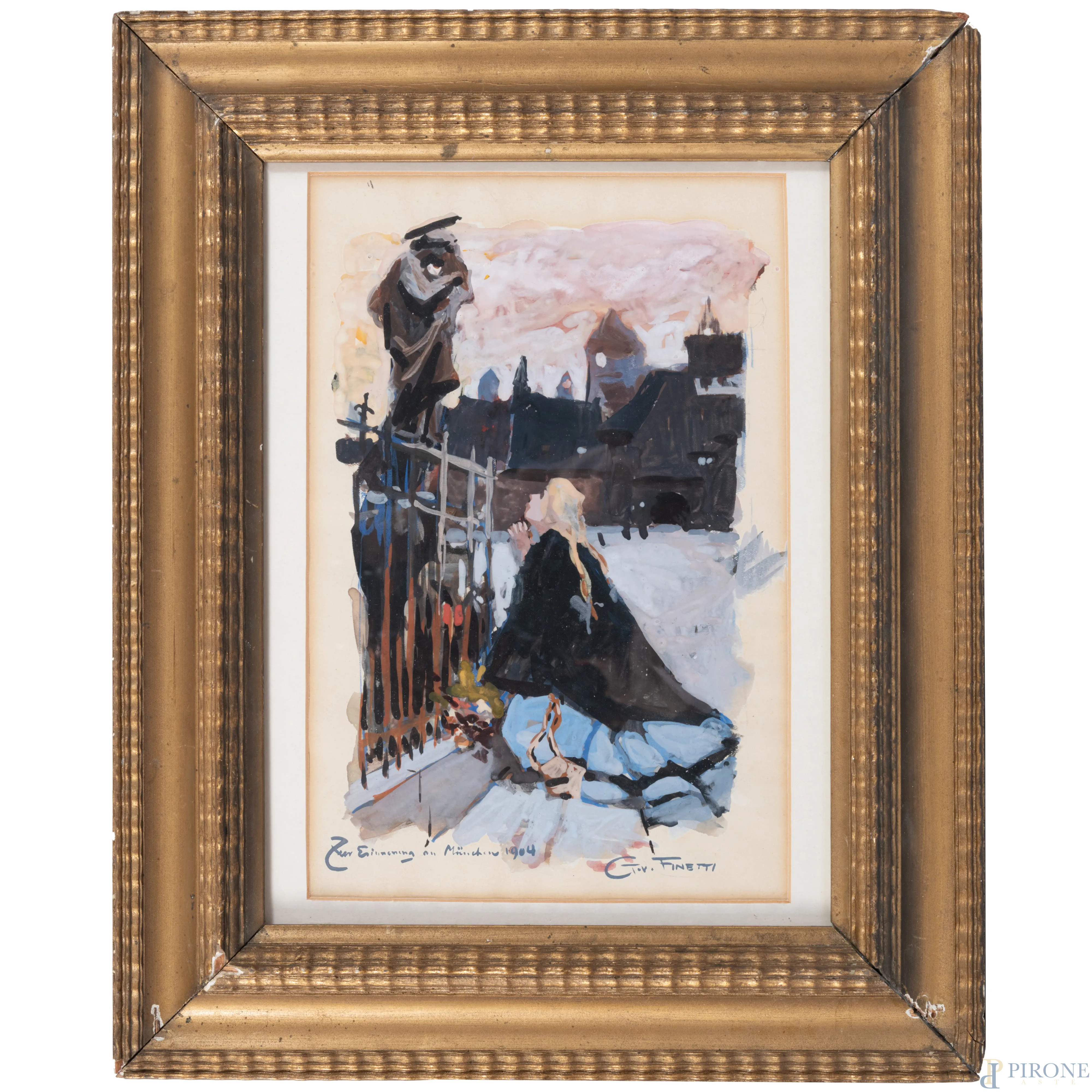 Ragazza in preghiera, XX secolo, acquerello su carta, cm 27x18, firmato in basso a destra; datato in basso a sinistra, (brunitura della carta, segni di usura)