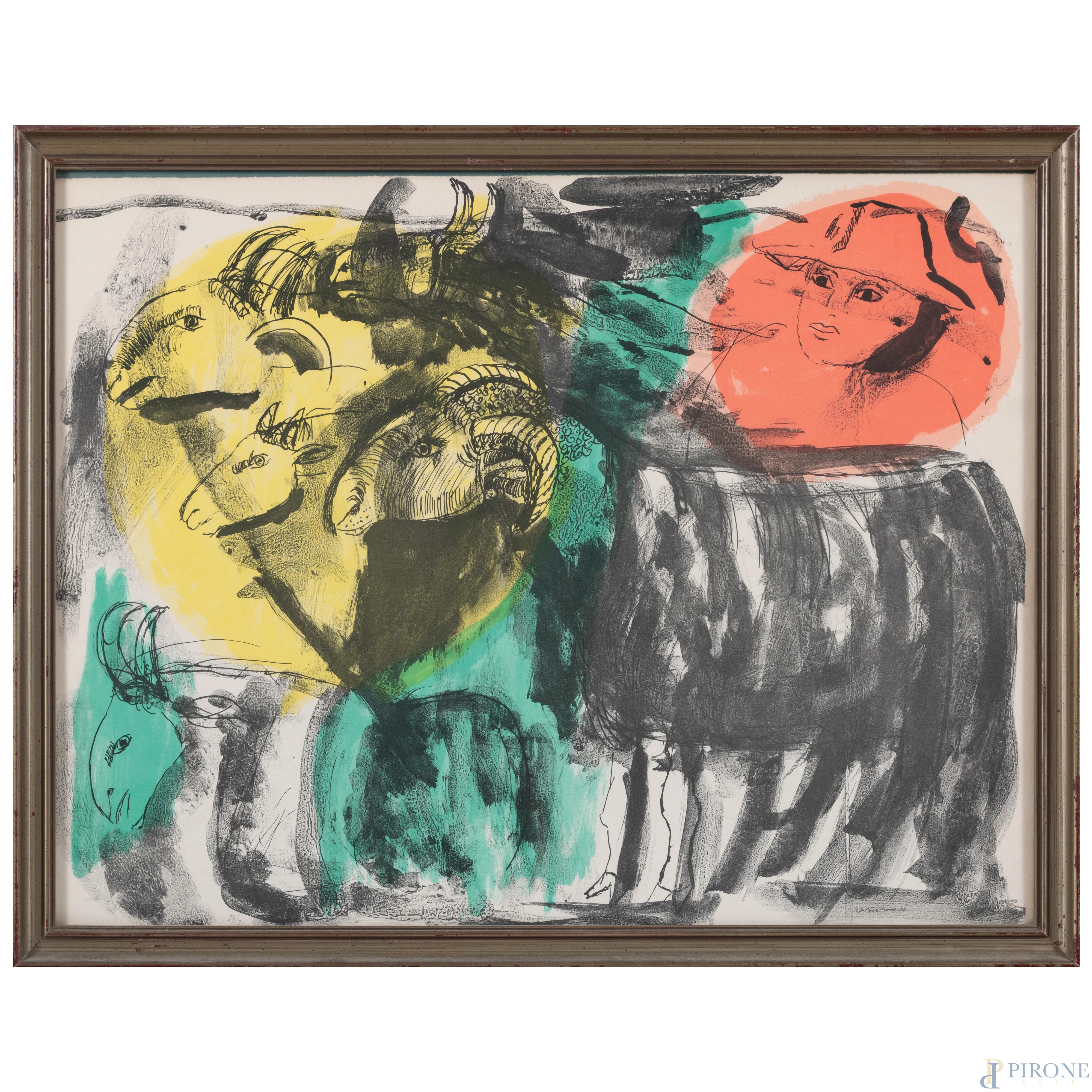 Remo Brindisi (1918-1996), Pastorale, litografia es. 29/75, cm 48x63, firmato in basso a destra, entro cornice