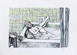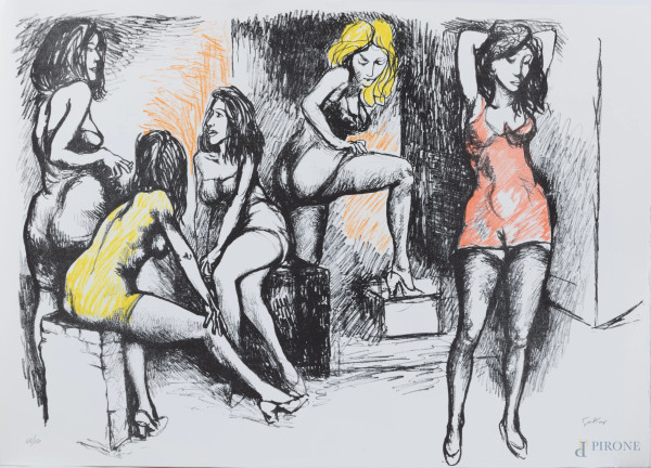 Renato Guttuso, Il bagno, litografia es. 141/240, cm 49,5x69,5, firmato in basso a destra