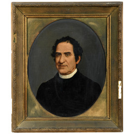 Ritratto di prelato, XIX secolo, olio su tela, cm 56x45, entro cornice, (piccole cadute di colore)