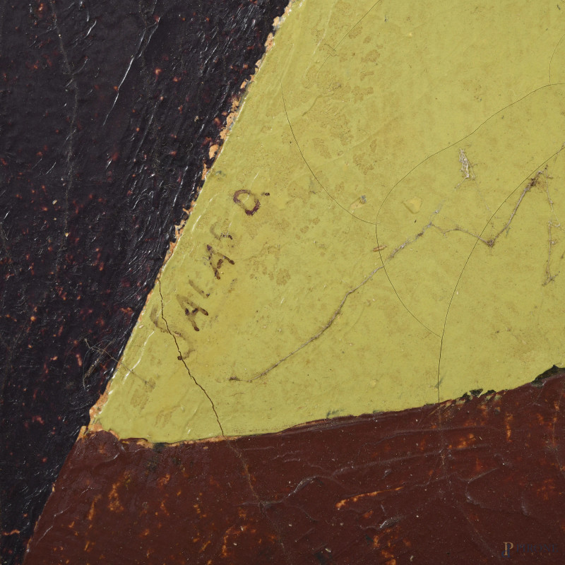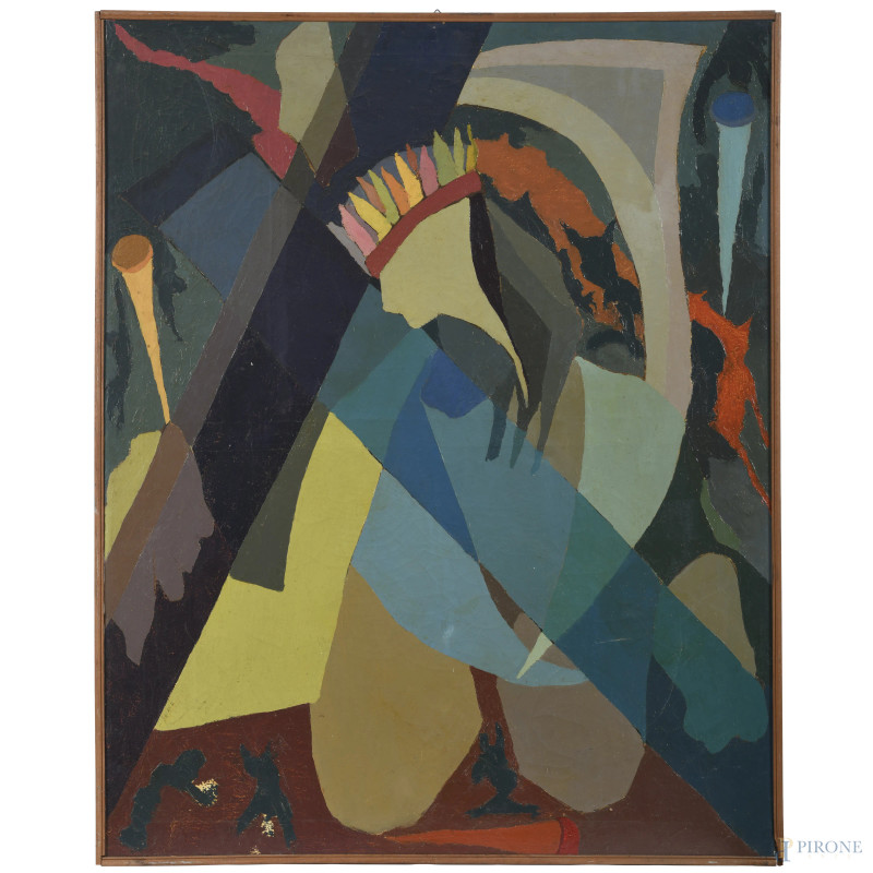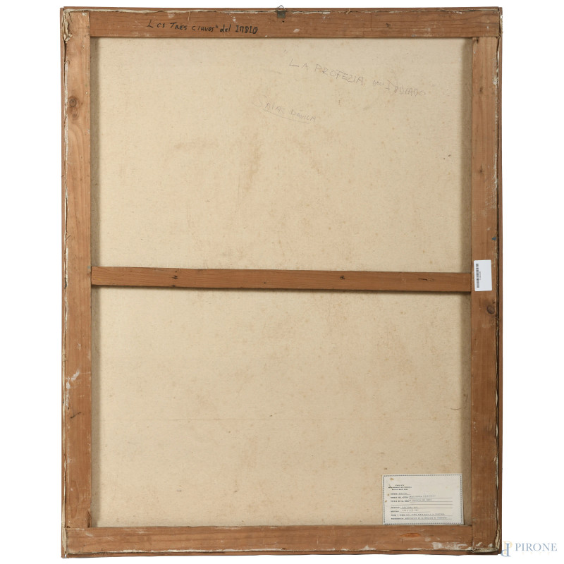 Salas Davila, La Profezia dell'Indio, XX secolo, olio su tela, cm 100x81, firmato in basso a sinistra, entro cornice, (sollevamenti di colore)