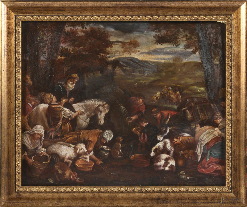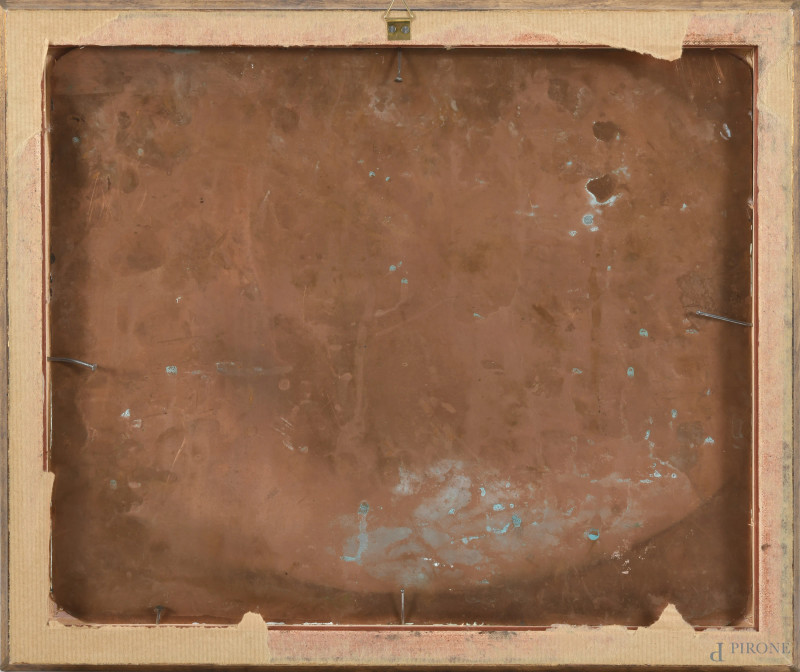 Scena campestre, XX secolo, olio su rame, cm 30x37, entro cornice (supporto lievemente imbarcato)