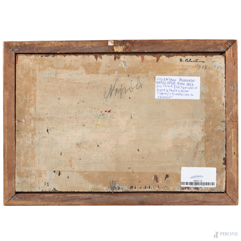 Scorcio di Napoli, XX secolo, olio su tavoletta, cm 22,5x34, firmato in basso a sinistra, entro cornice, (segni di usura, fori, difetti)