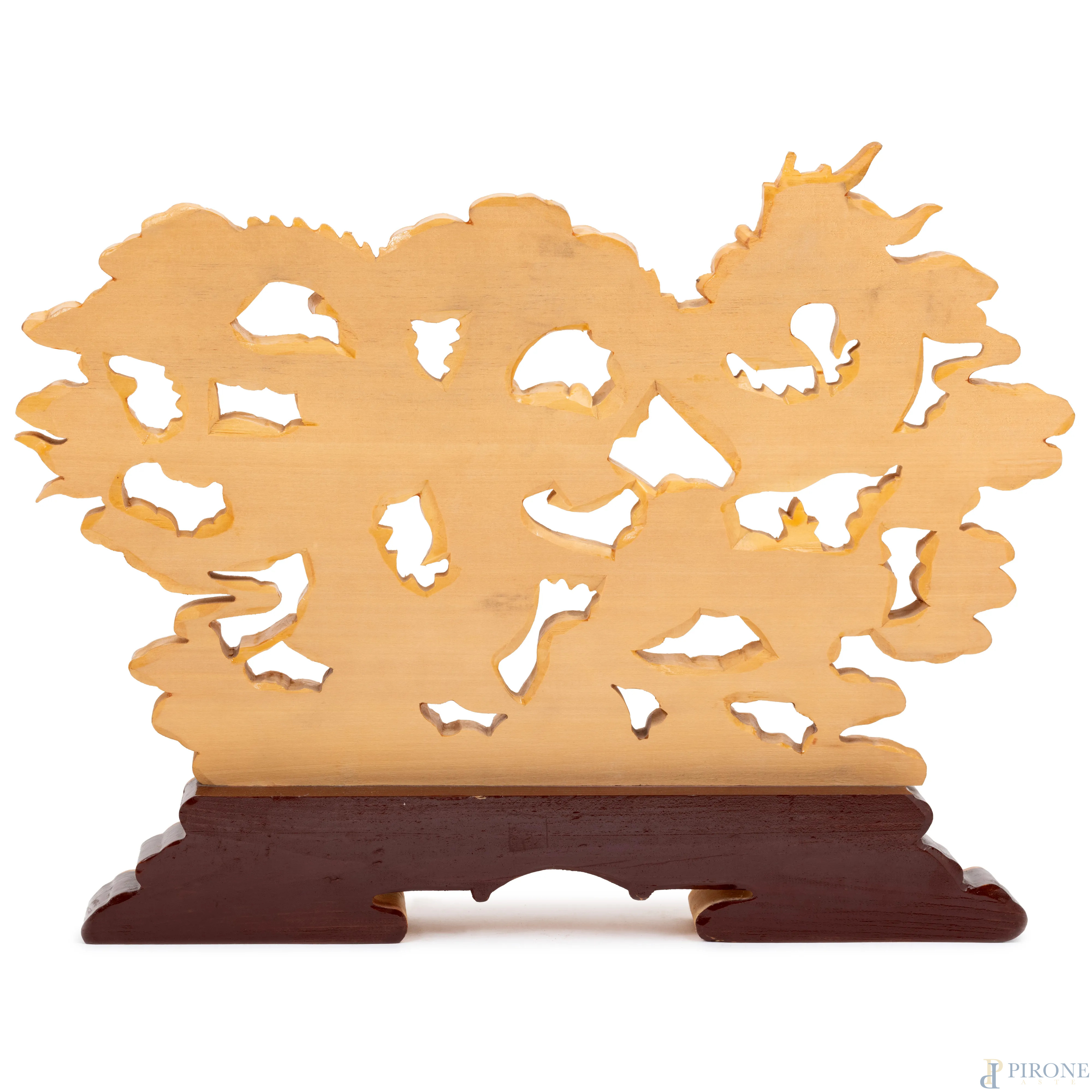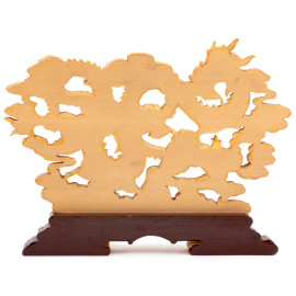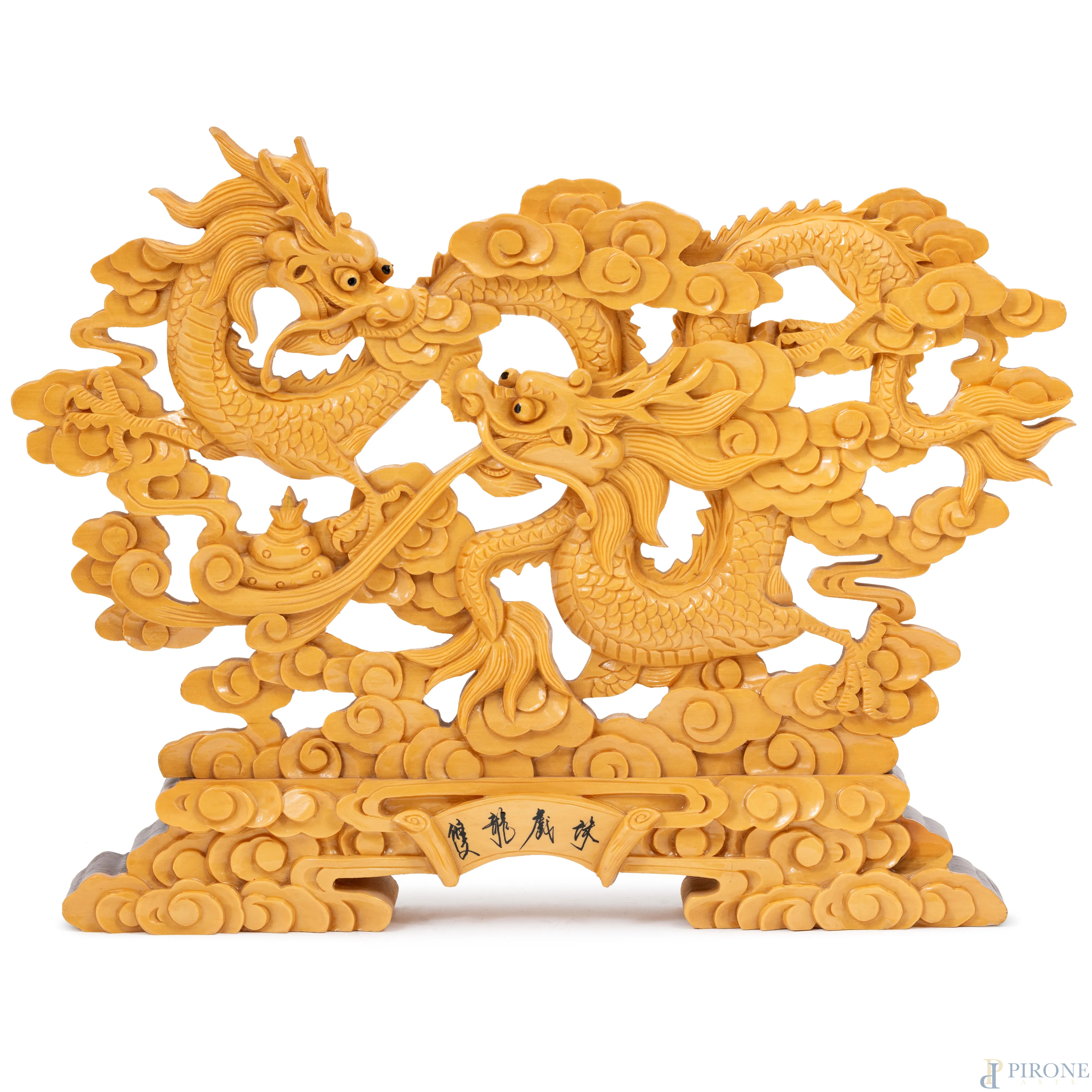 Scultura da tavolo in legno dipinto a guisa di dragoni, XX secolo, cm 31,5x41,5x4