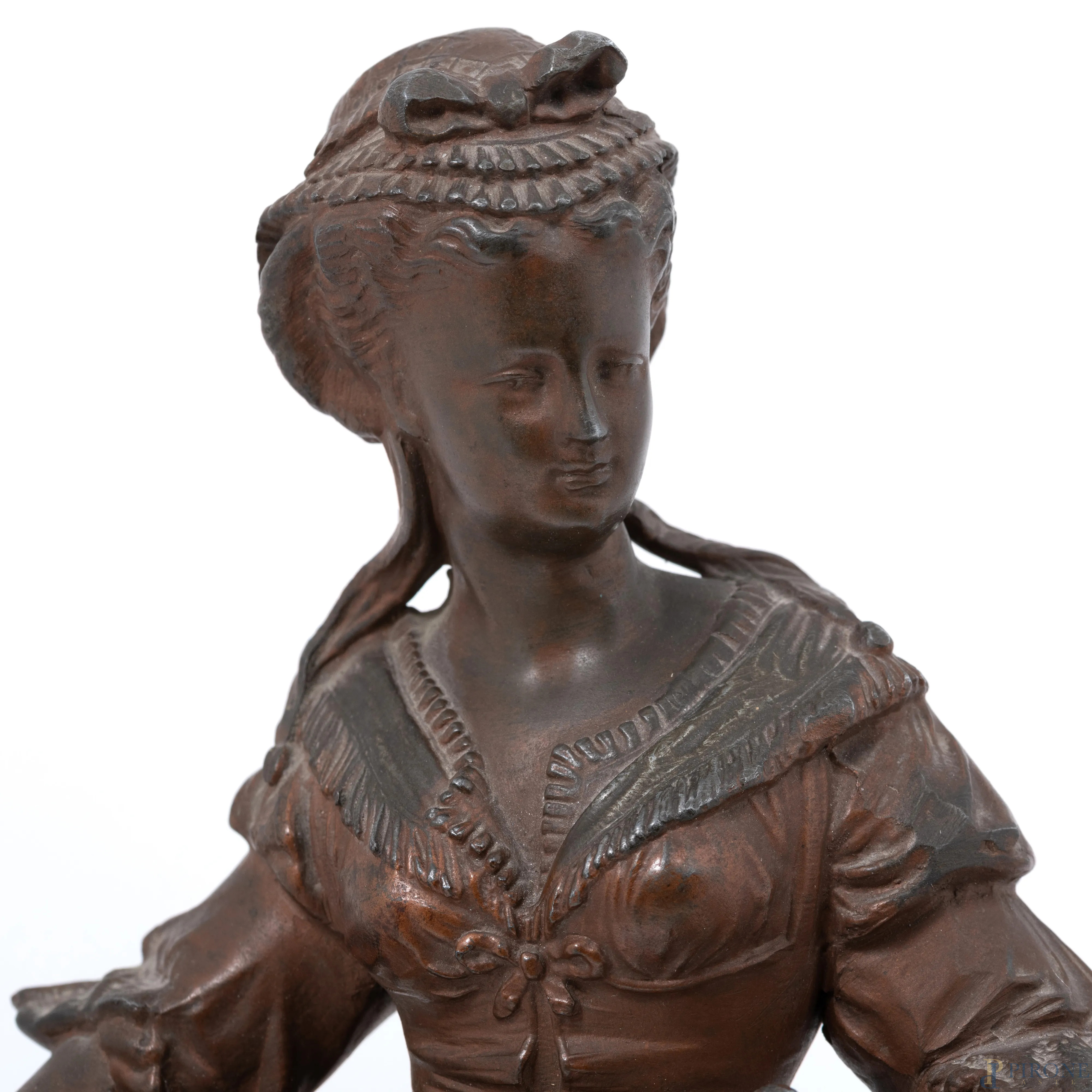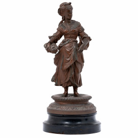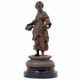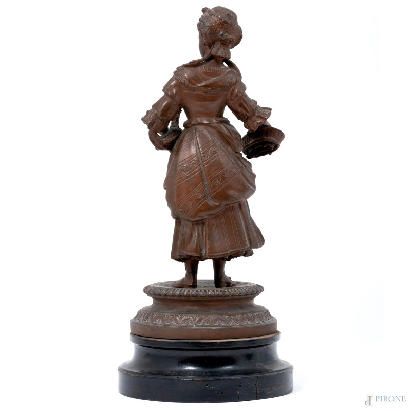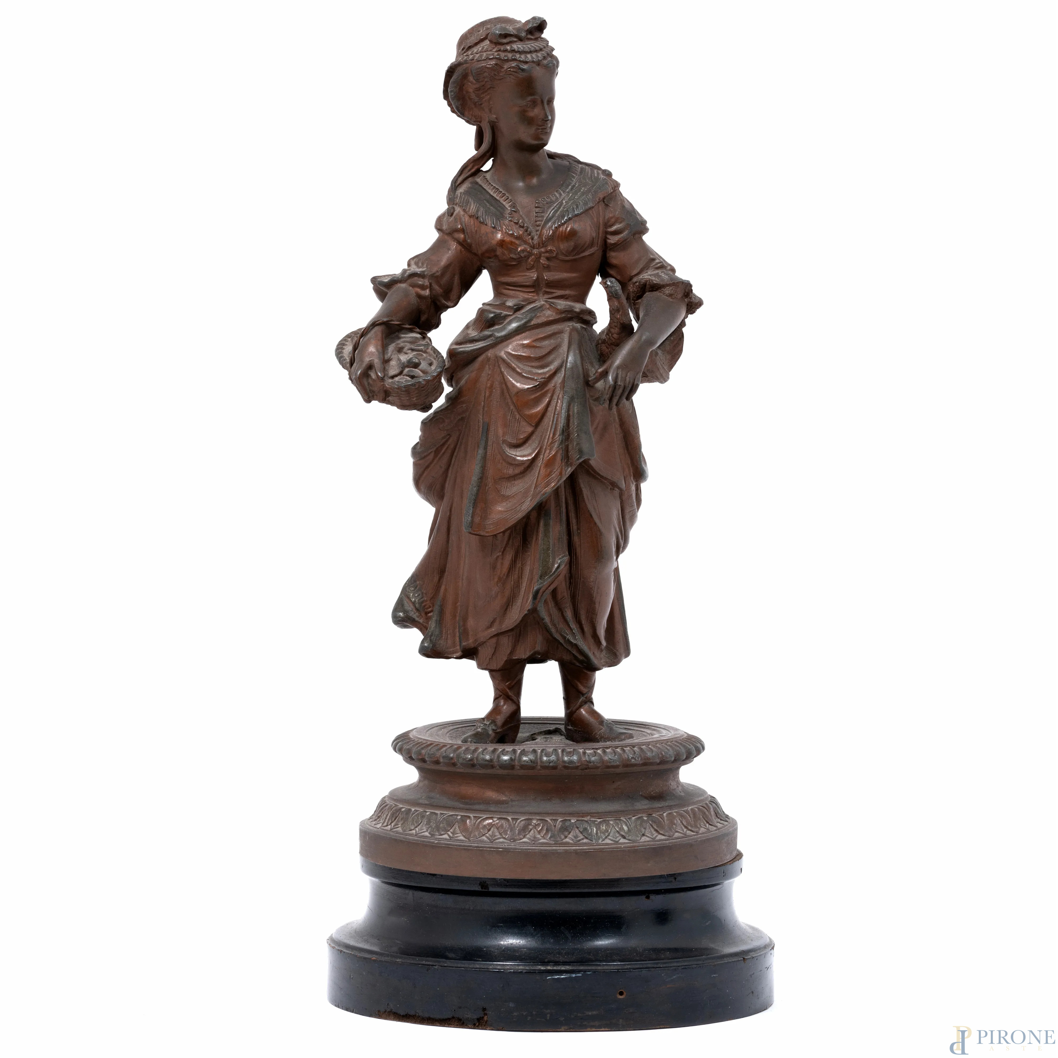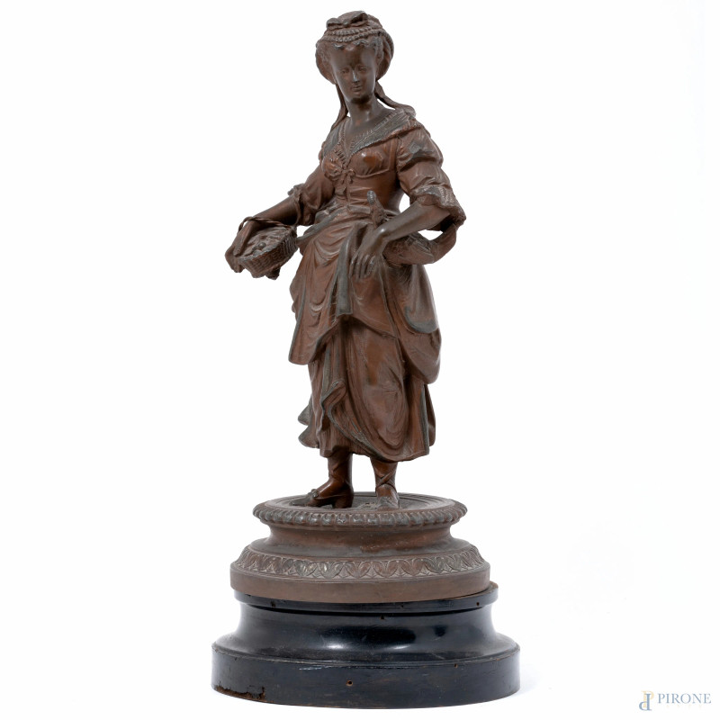 Scultura in antimonio su base in legno dipinto, XX secolo, altezza cm 36, (segni di usura, difetti)