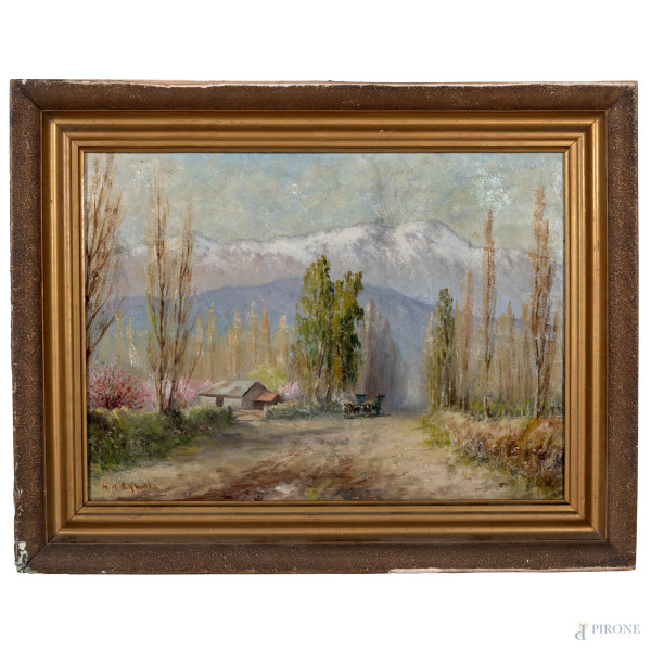 Scuola fiamminga del XVII-XVIII secolo, Scorcio di costa tirrenica, olio su tela, cm 75,5x99,5, (craquelure, sollevamenti di colore, abrasioni)