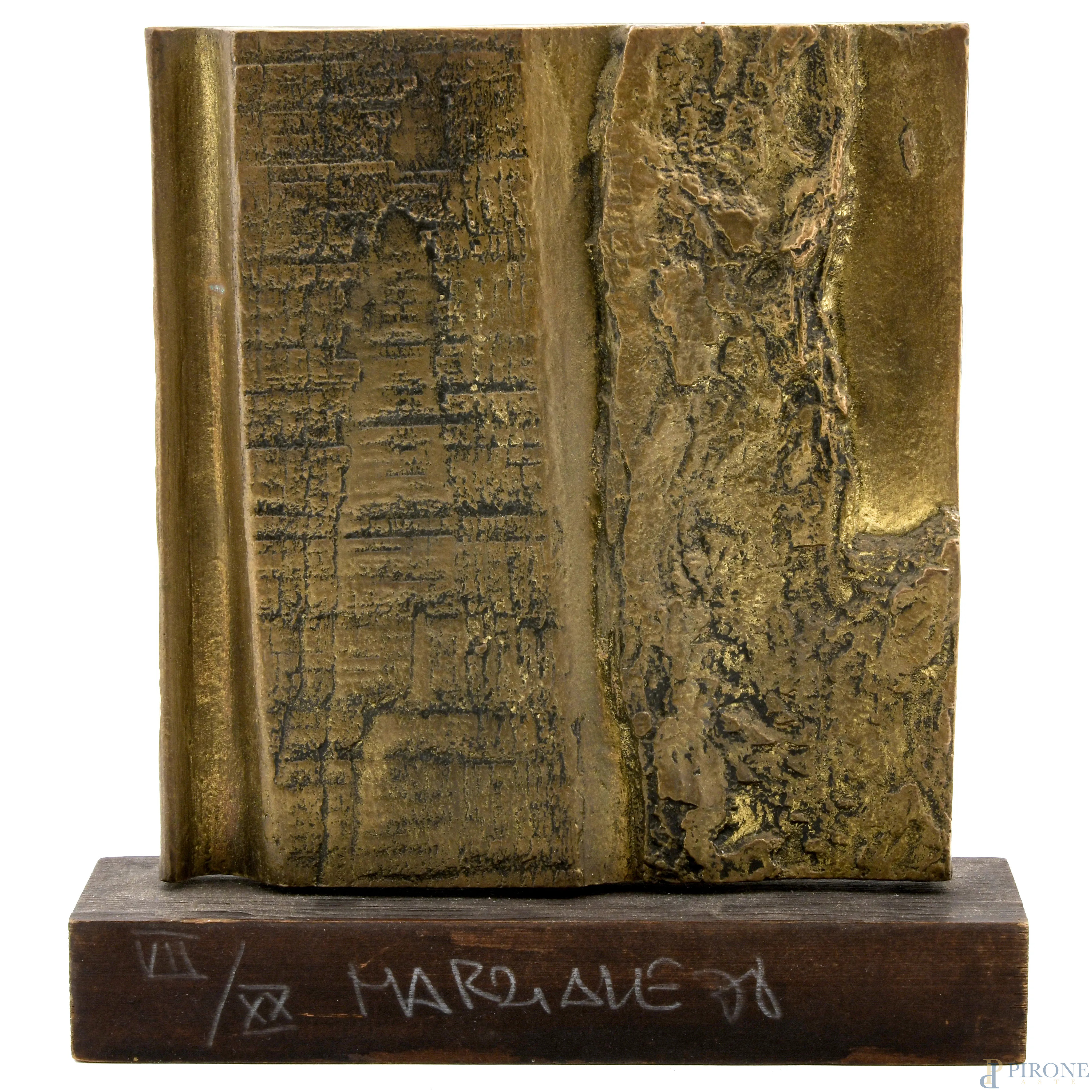 Senza titolo, scultura in bronzo su base in legno, iscritto "VII/XX Marziale 78", altezza cm 21,5, (segni di usura)