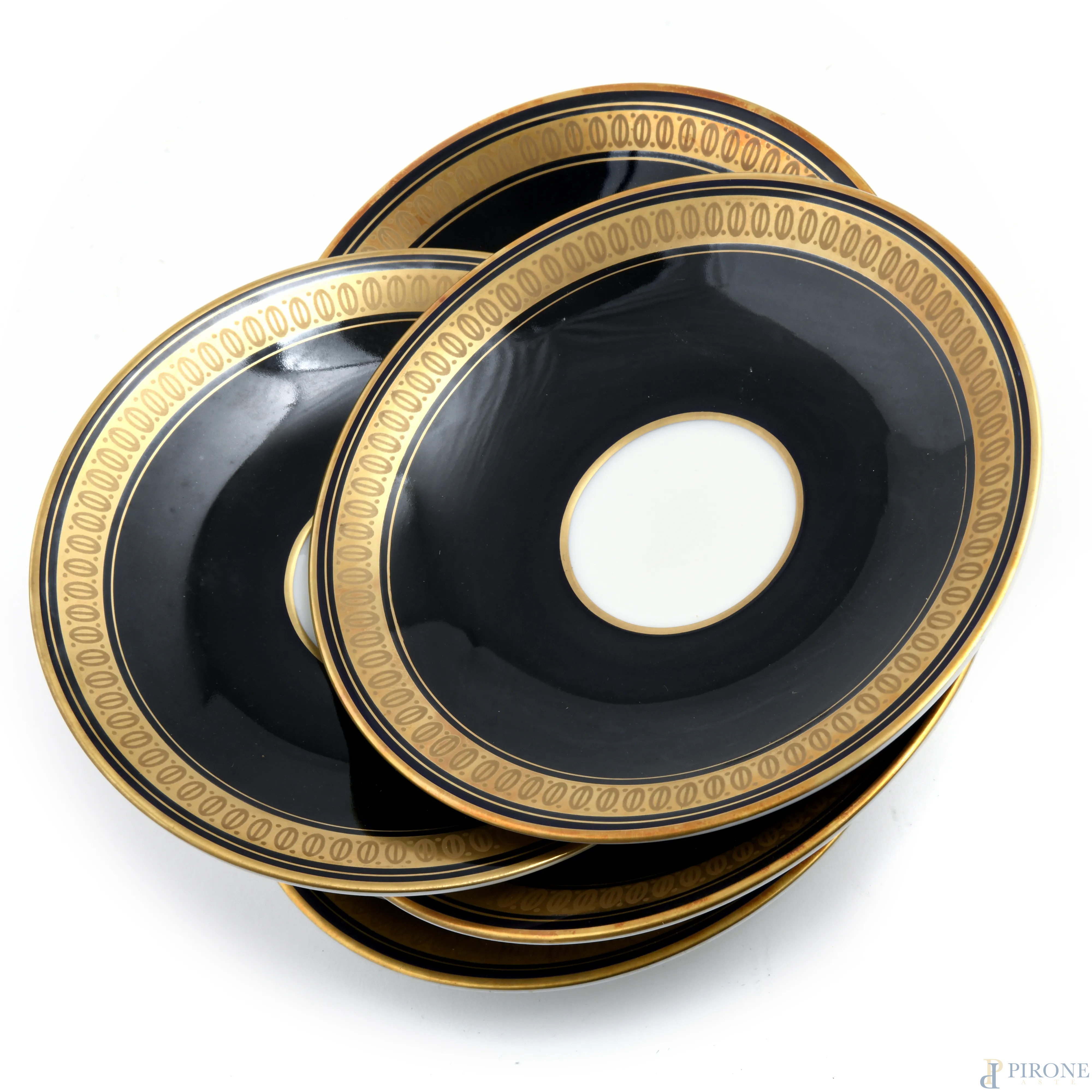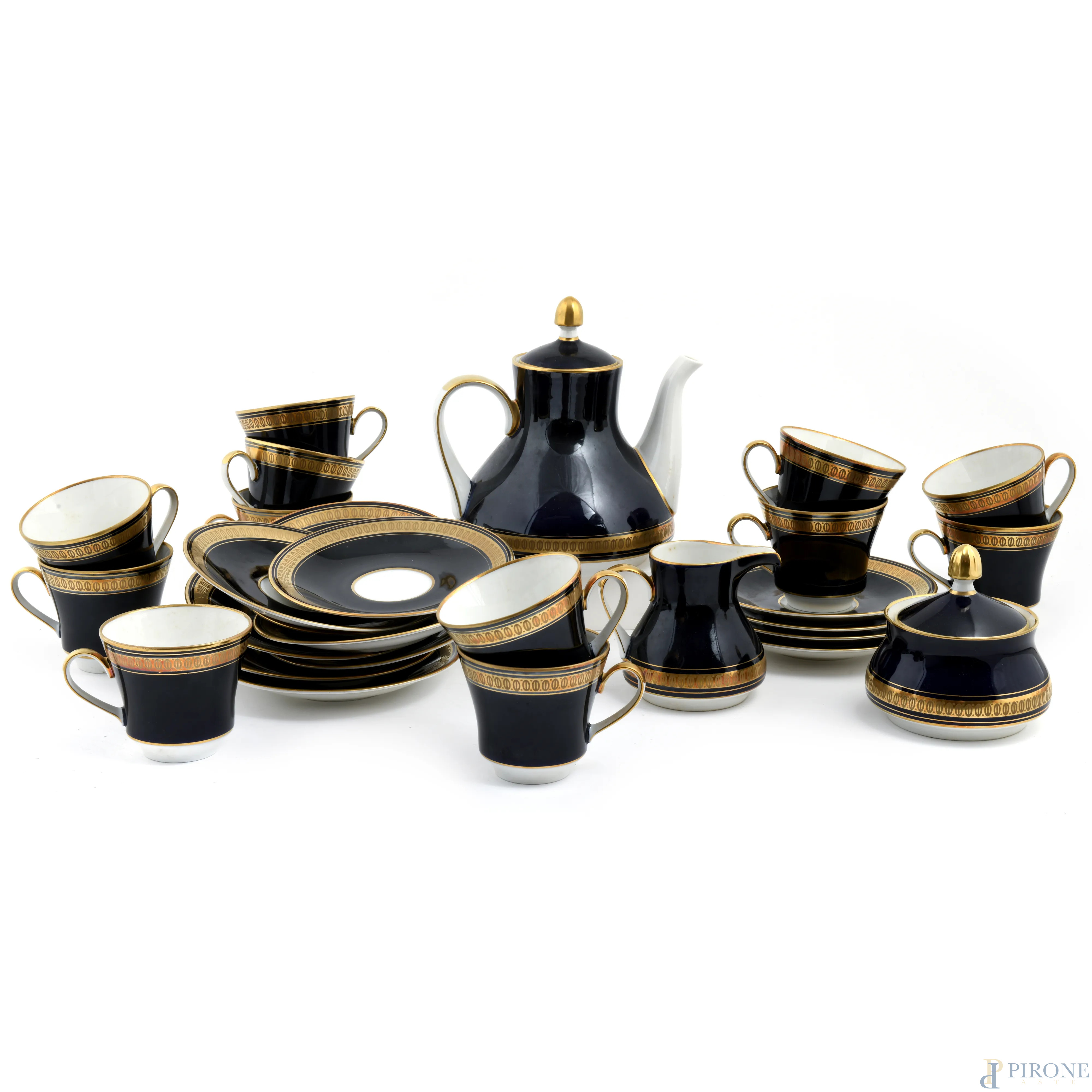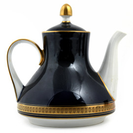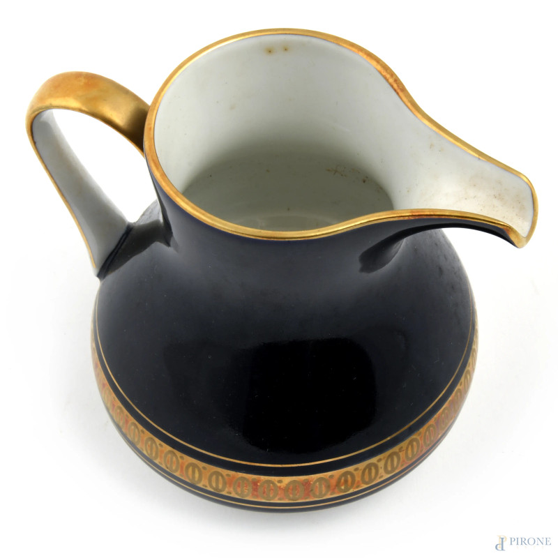 Servizio da the in porcellana Weimar nei toni del blu e dell'oro, XX secolo, altezza cm 17, (lievi segni di usura)
