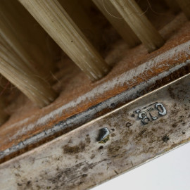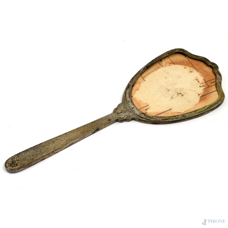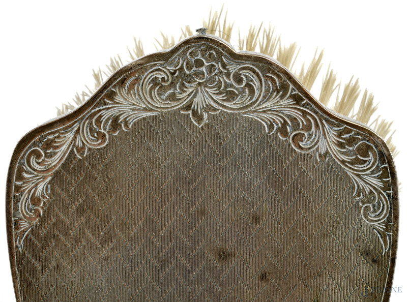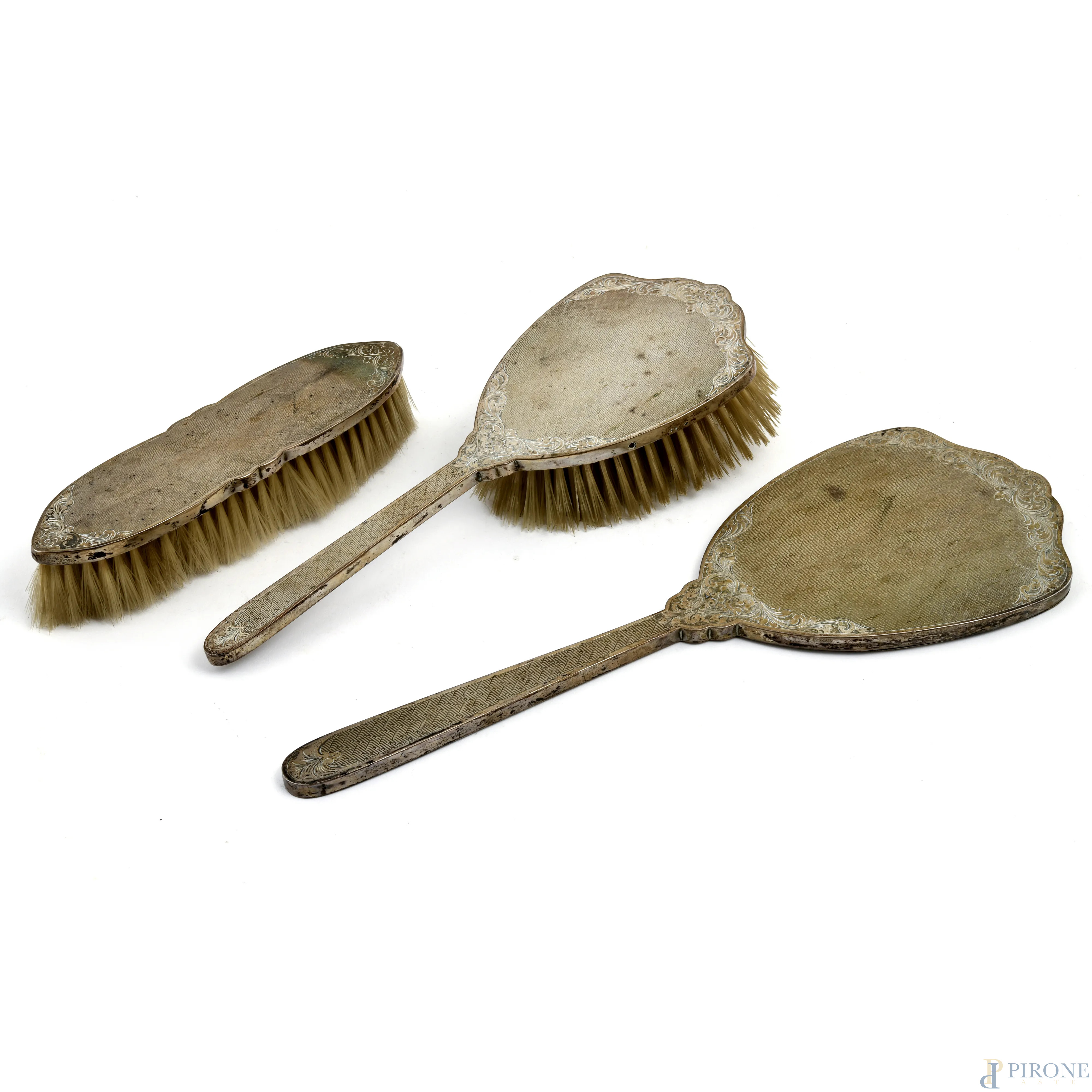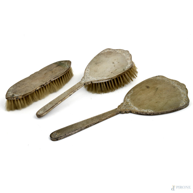 Servizio da toletta rivestito in argento 800/000, XIX secolo, misura massima cm 31, peso lordo gr 340