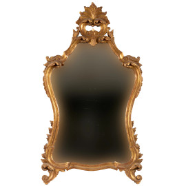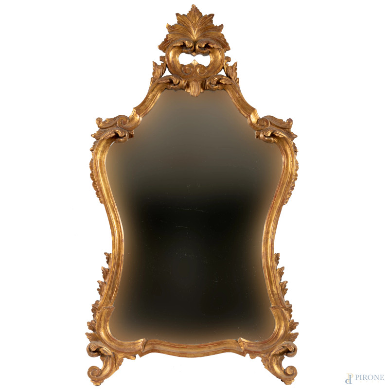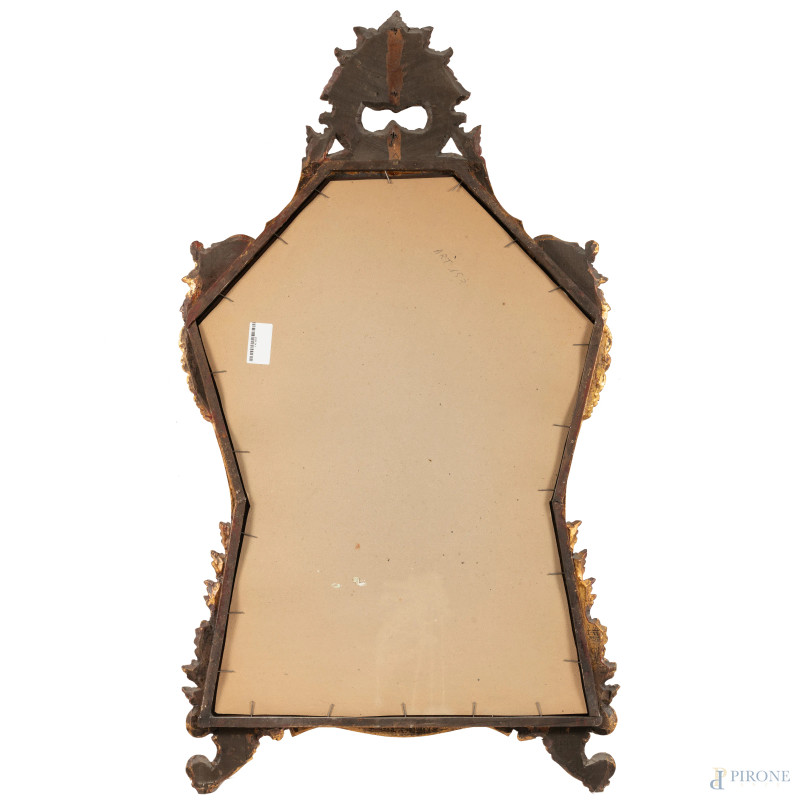 Specchiera in legno intagliato e dorato, XX secolo, cm 111x60, (segni di usura, difetti, scalfiture)