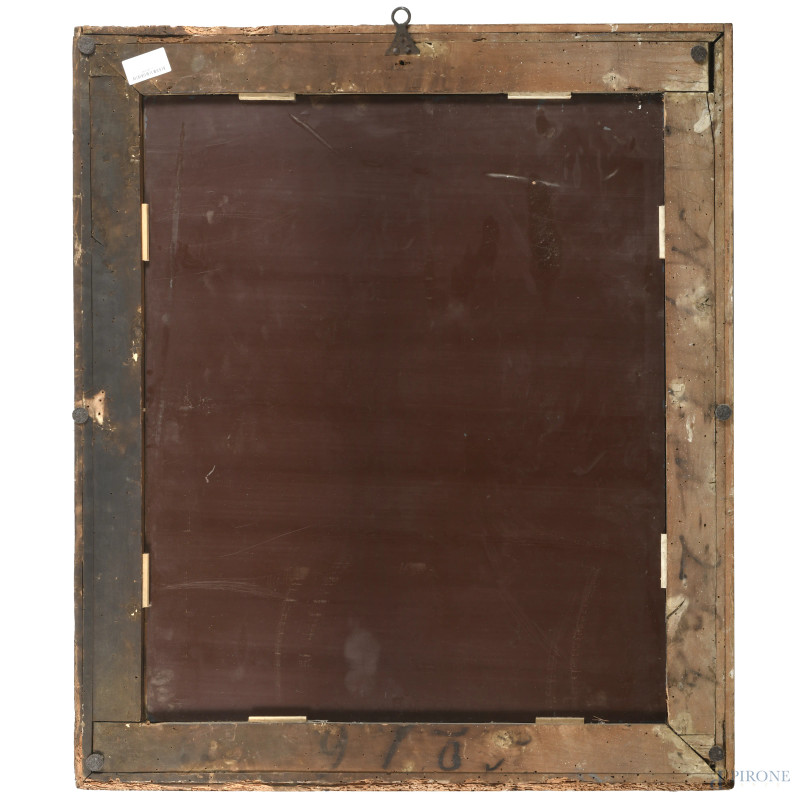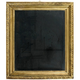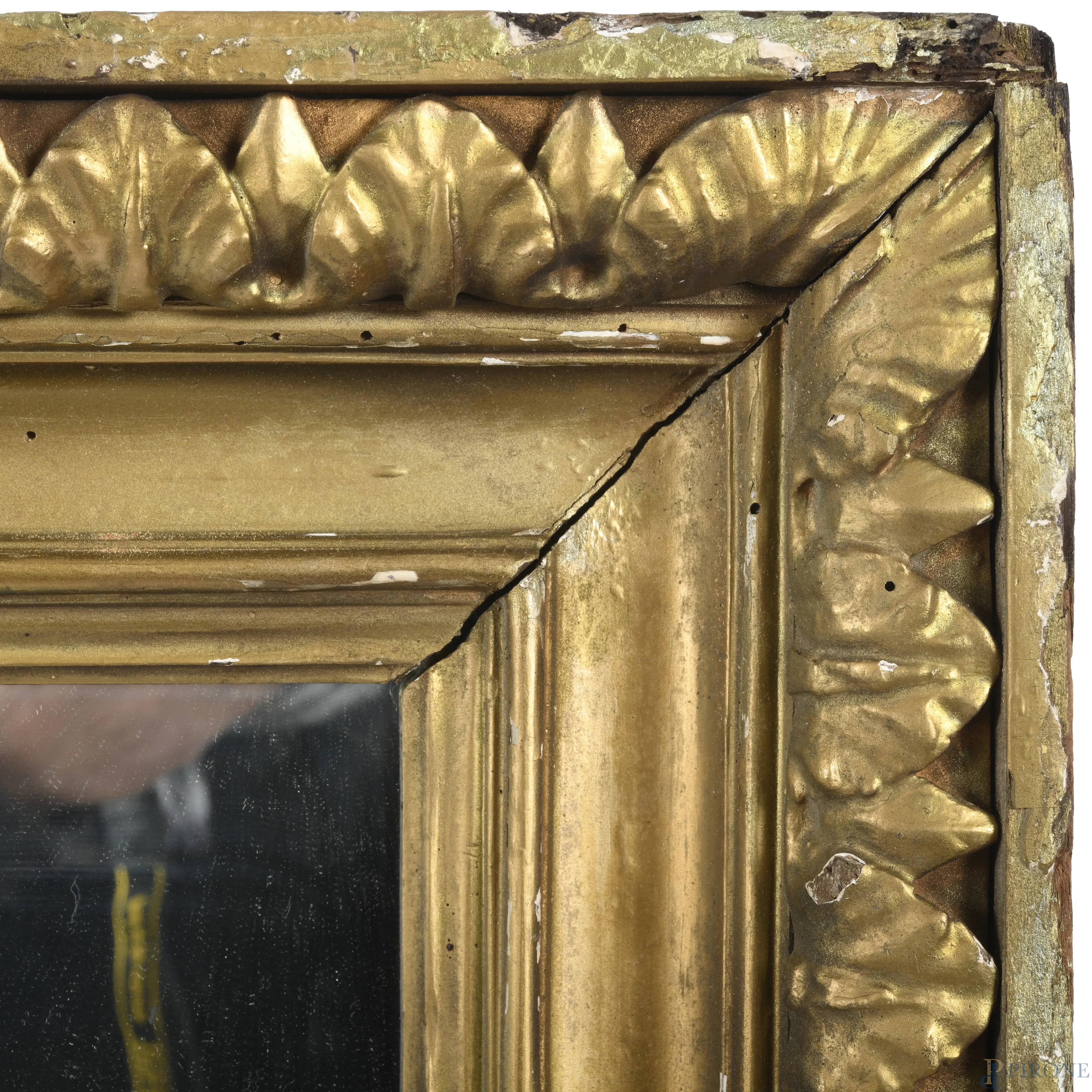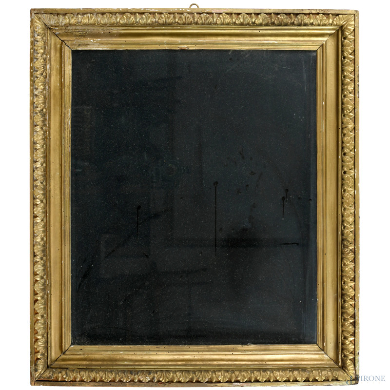 Specchiera in legno intagliato e dorato, XX secolo, cm 97x85, (segni di usura, difetti, scalfiture, cadute di doratura)