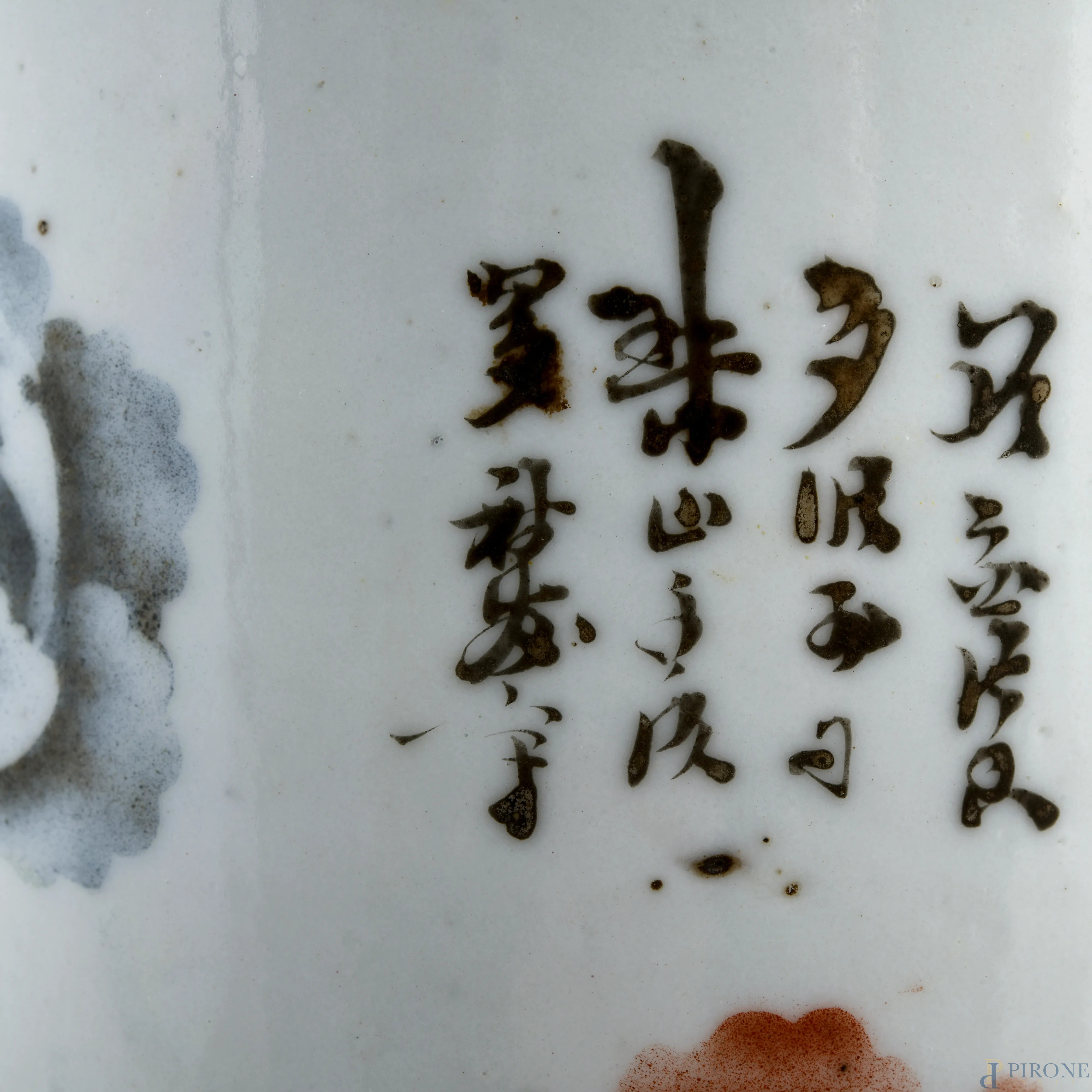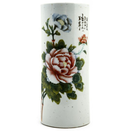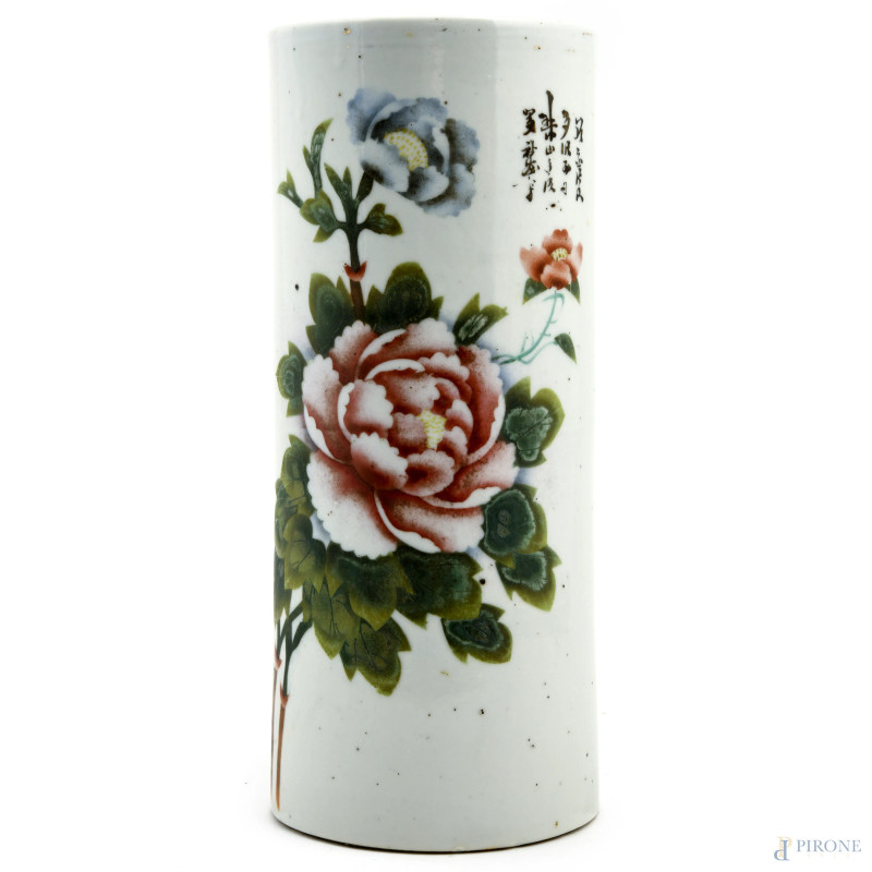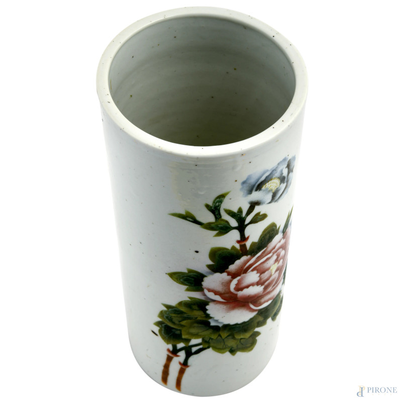Vaso in porcellana bianca decorato con motivi floreali. Cina, XX secolo, altezza cm 28 (difetti, segni di usura)