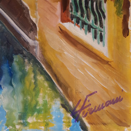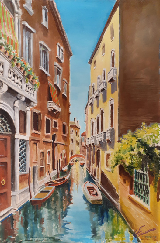Veduta di canale di Venezia, olio su tela, cm 72x48, firmato in basso a destra, senza telaio