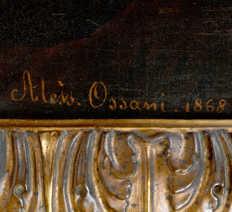 Alessandro Ossani (att. seconda metà XIX secolo), Ritratto di gentiluomo, olio su tela, cm 63x50, firmato e datato "1868" a destra, entro cornice, (craquelure, restauri)