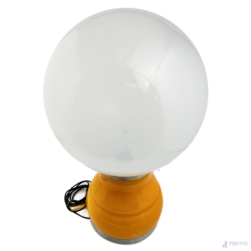 Attr. a Carlo Nason, Lampada da tavolo in vetro di Murano ed elementi cromati. Prod. Stilux, Italia, altezza cm 65, (segni di usura, da revisionare)