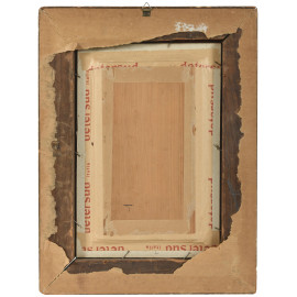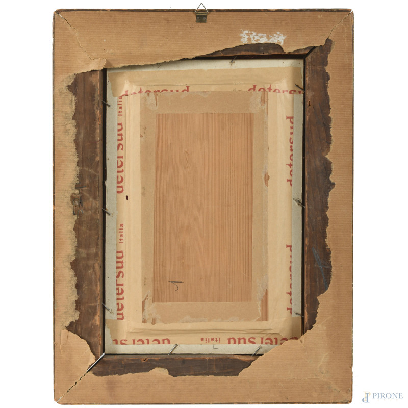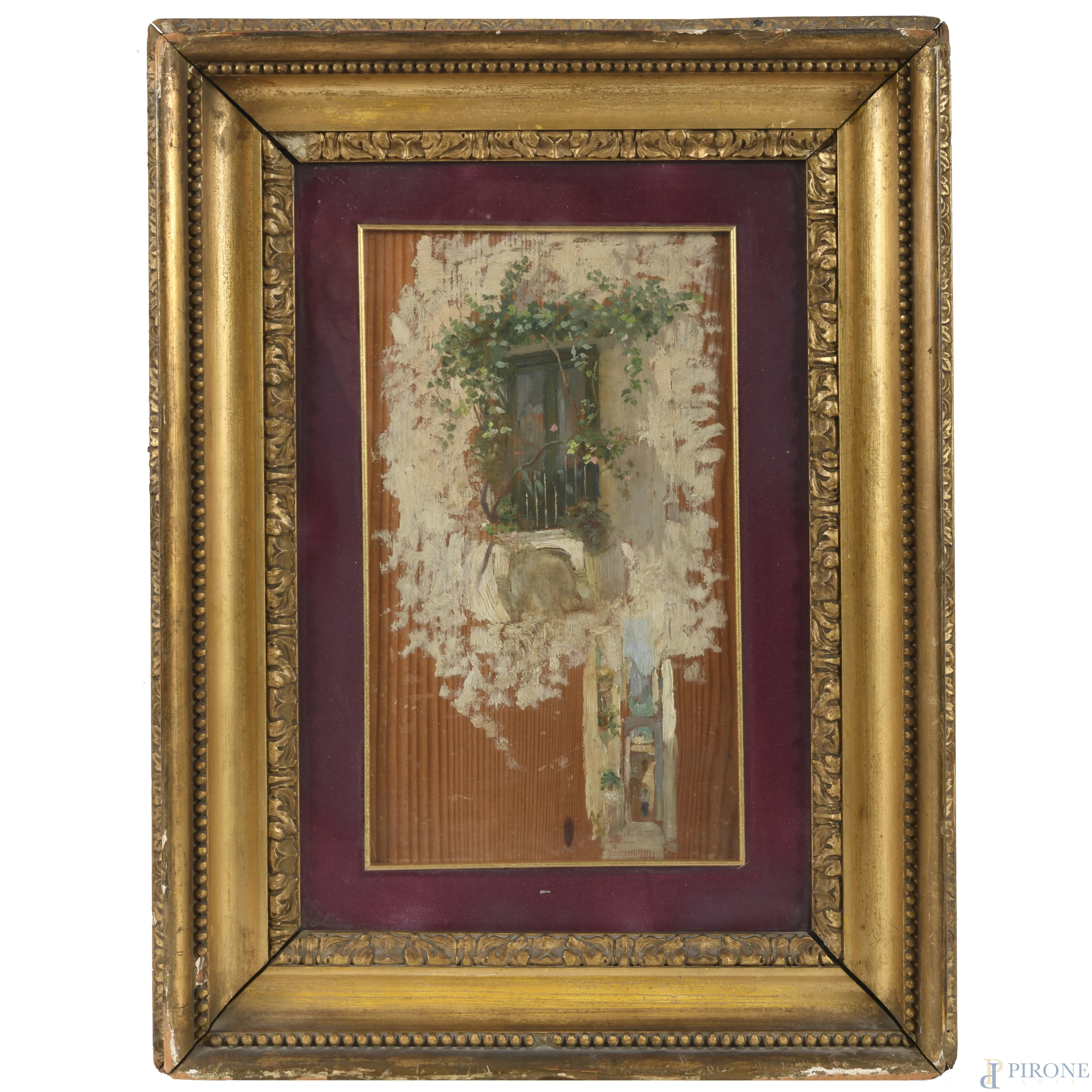 Balcone, XX secolo, olio su tavoletta, cm 29x17,5, entro cornice
