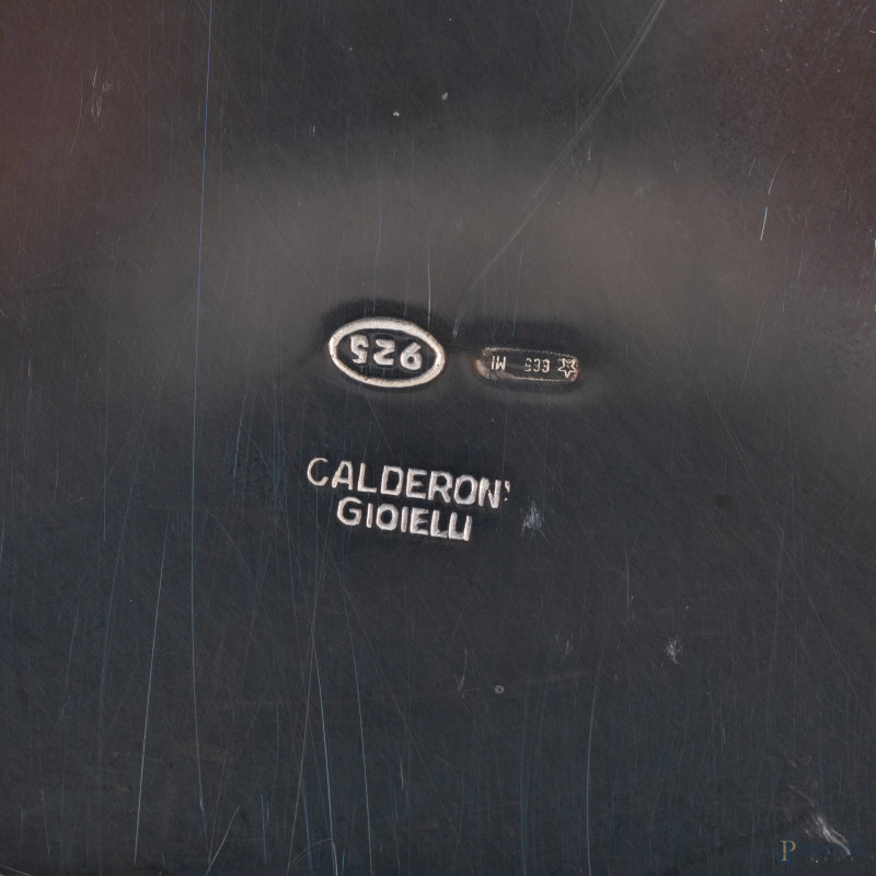 Centrotavola con coperchio in argento 925/000 e piatto da portata in argento 800/000, misure massime diametro cm 39,5, peso complessivo gr 1625