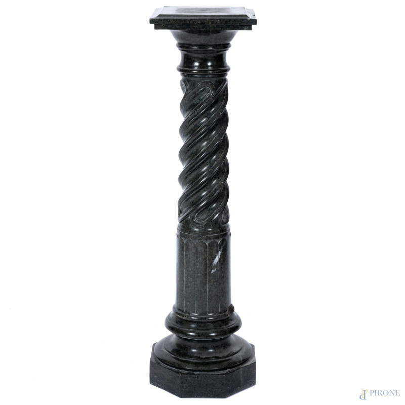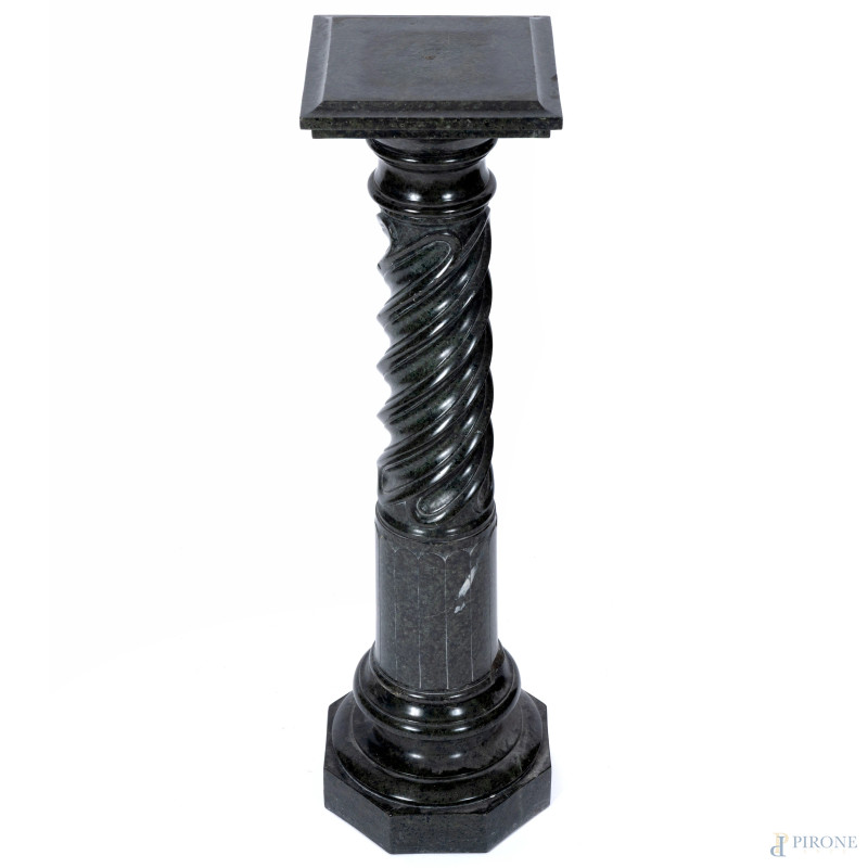 Colonna in marmo verde con base esagonale, XX secolo, altezza cm 112, (segni di usura, scalfiture, rotture, difetti)