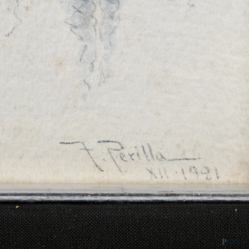 Francesco Perilla ( 1874-1954), Veduta di Istanbul, acquerello su carta, cm 20x23, firmato e datato "1921" in basso a destra, entro cornice, (segni di usura, tracce di umidità)