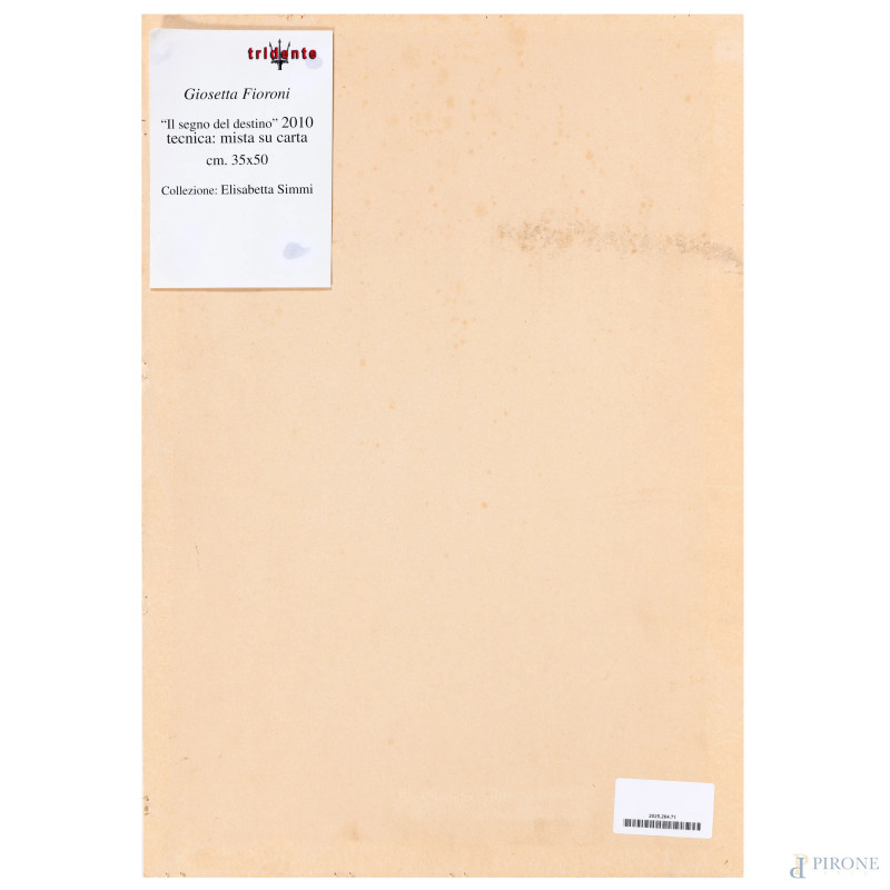 Giosetta Fioroni (1932-), Il segno del destino, 2010, tecnica mista su carta, cm 50X35, firmato, titolato e datato in alto, (segni di usura, lievi abrasioni)