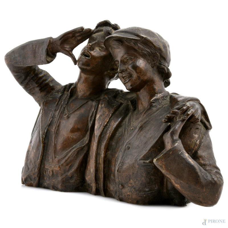 I due amici, XX secolo, scultura in bronzo, altezza cm 18