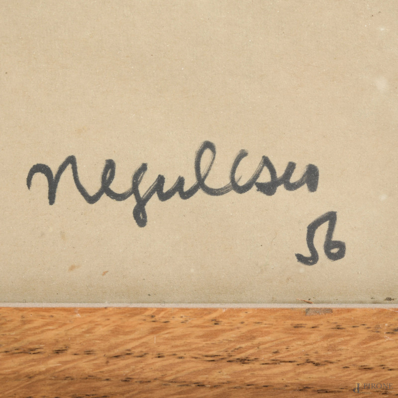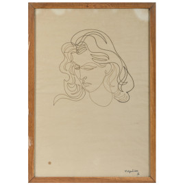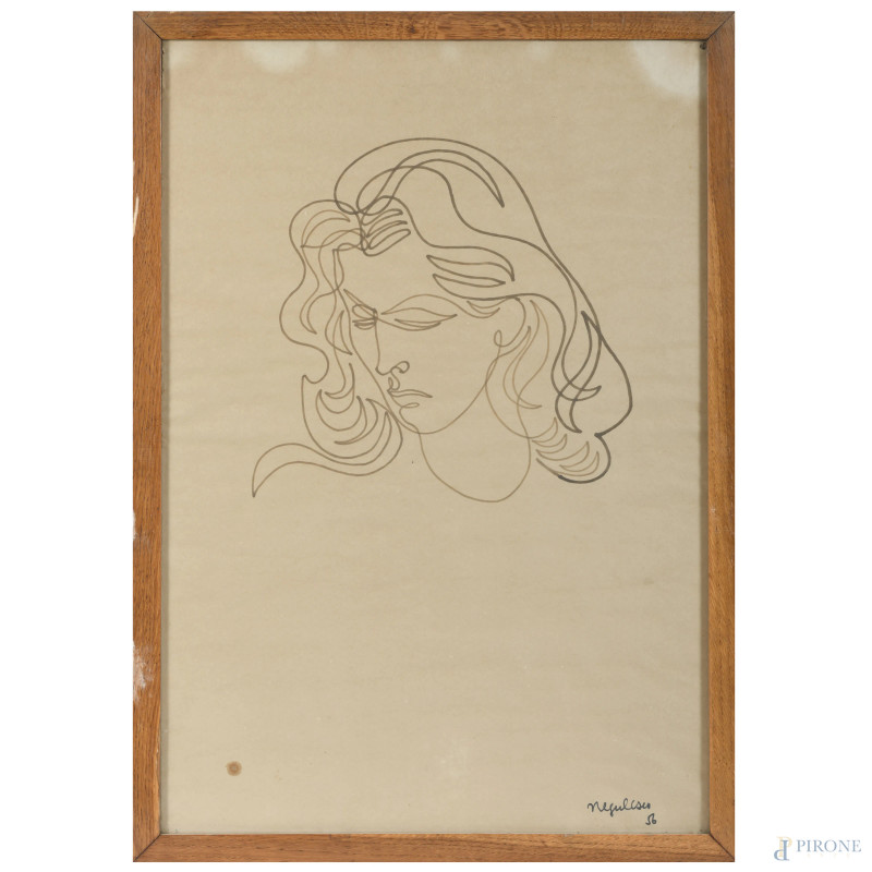 Jan Negulesco (1900-1993), Volto di donna, pennarello su carta, cm 75x51,5, firmato e datato "56" in basso, entro cornice, (gora, ondulazioni della carta)
