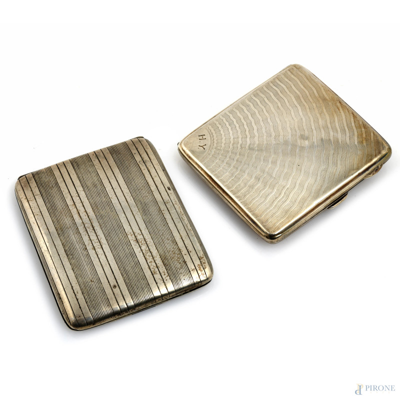 Lotto composto da due portasigarette in argento, XX secolo, misure massime cm 9,5x8, peso complessivo gr 185