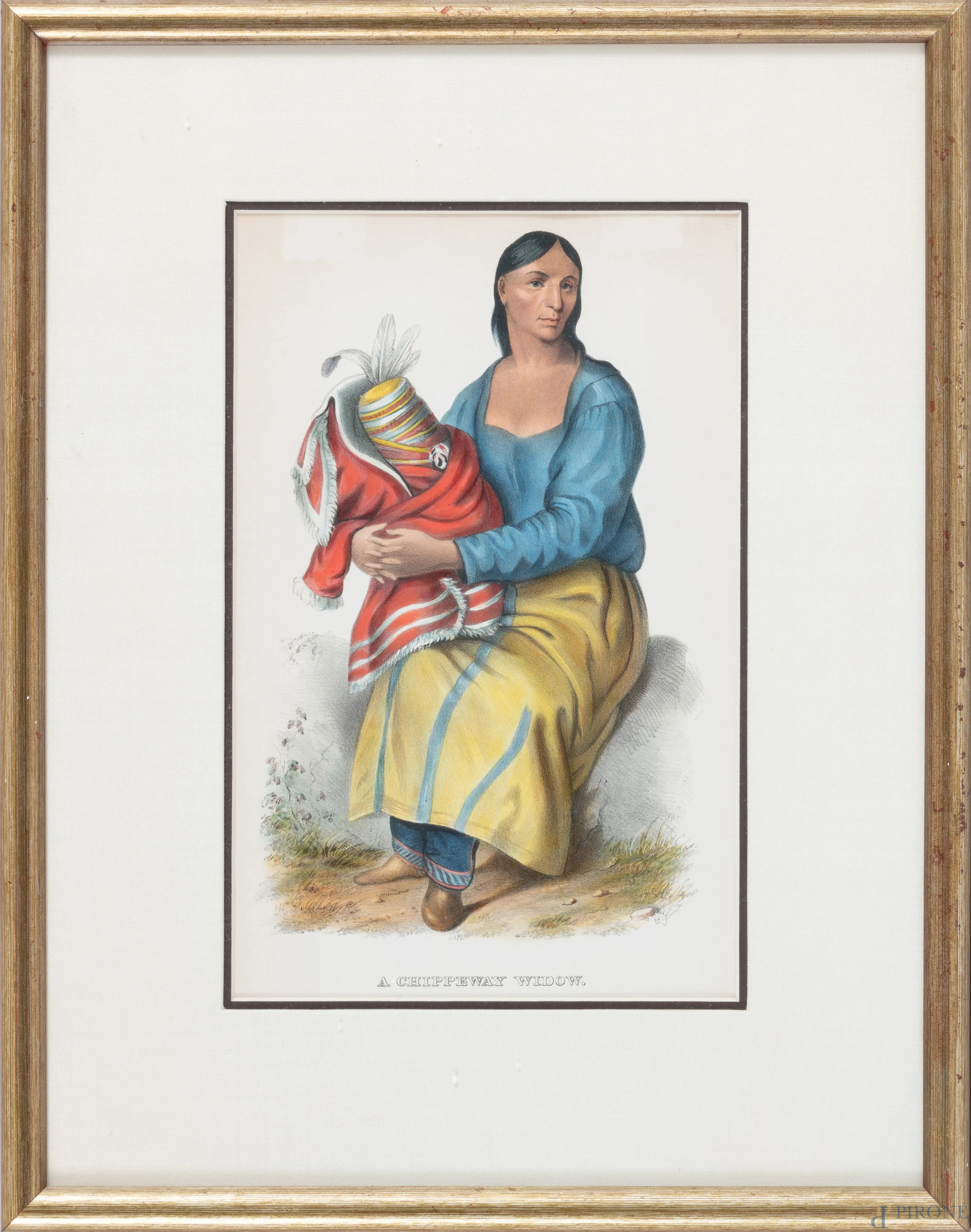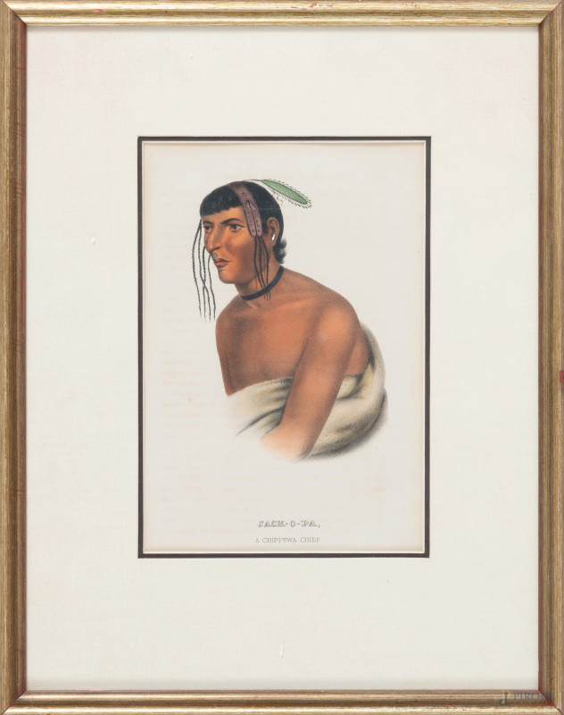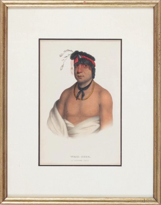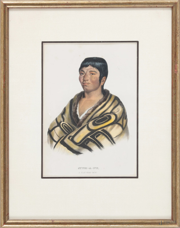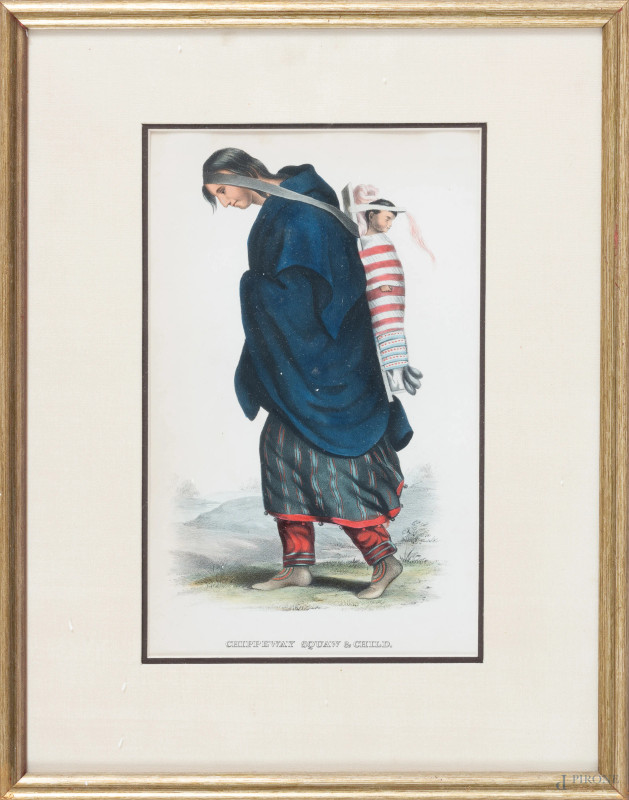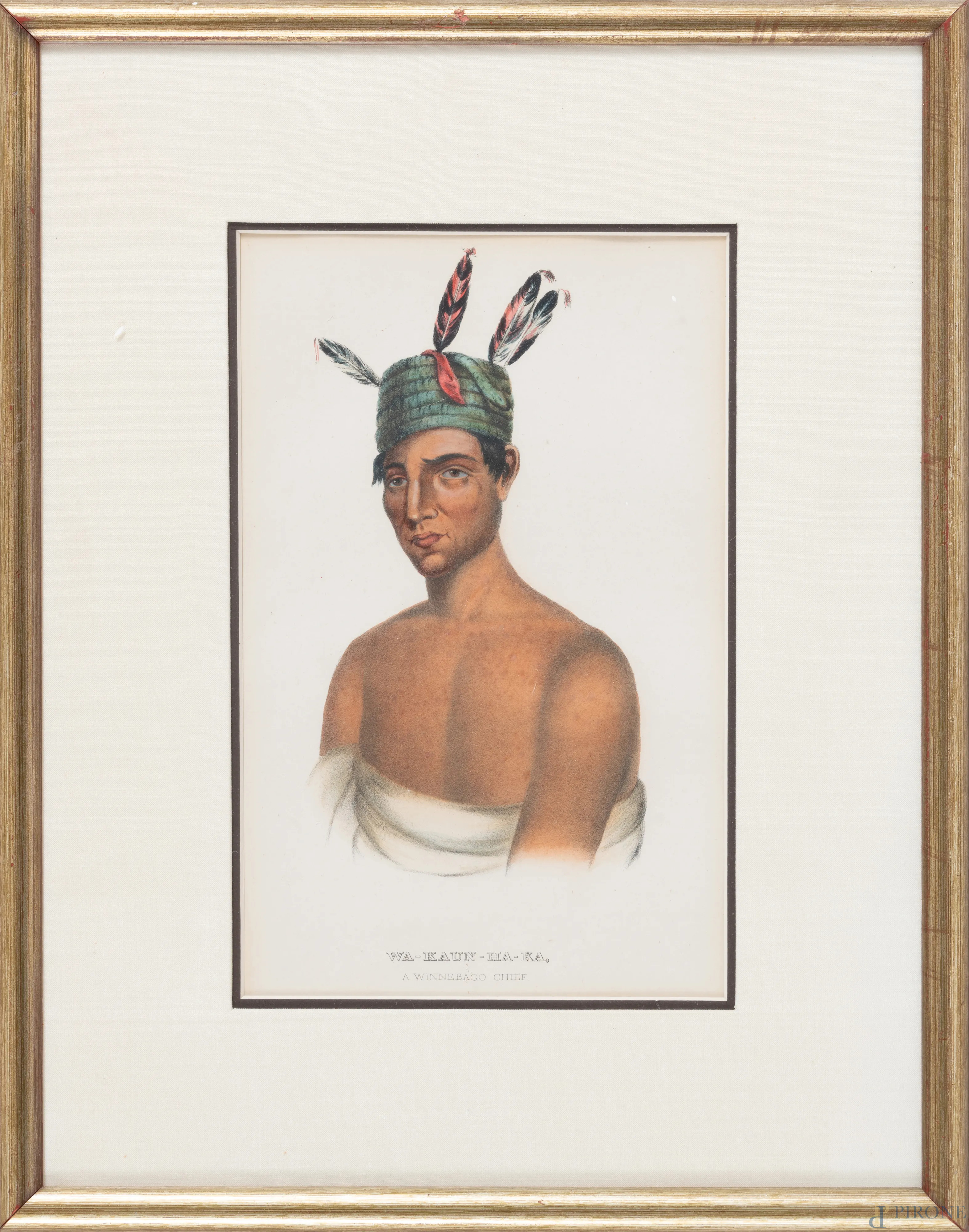 Lotto composto da sei stampe raffiguranti Nativi Americani, XX secolo, cm 34x27 compreso passepartout, entro cornice