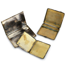 Lotto composto da tre portasigarette in argento, XX secolo, misure massime cm 12x8,5, peso complessivo gr 399